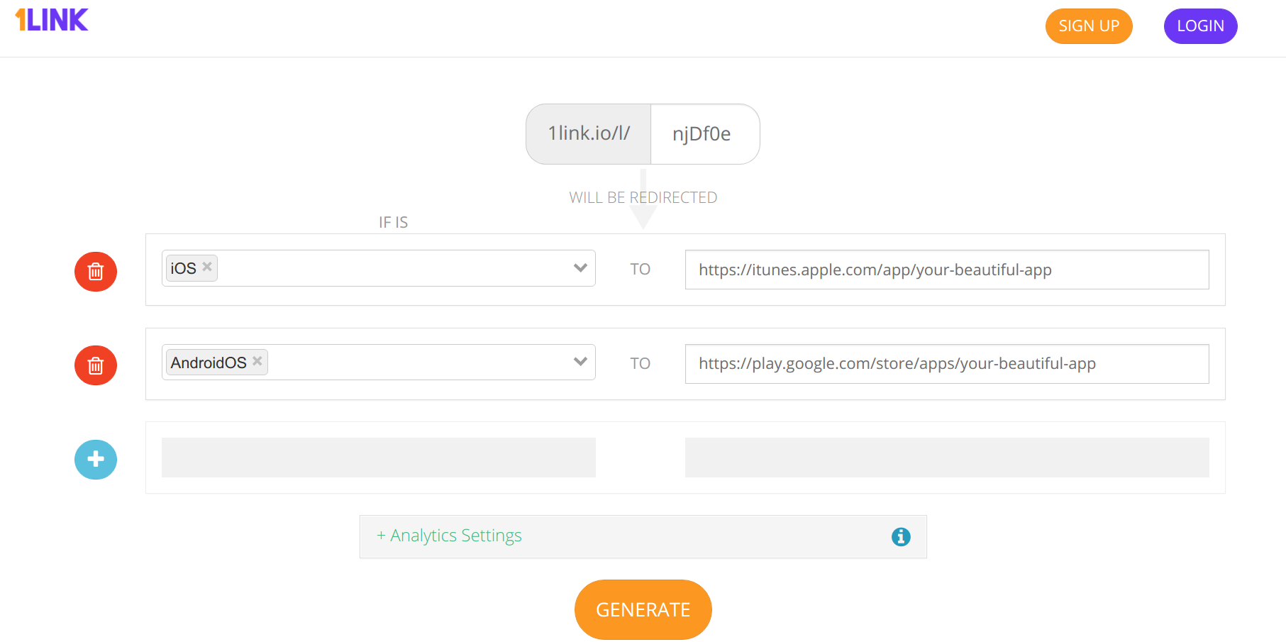 One app should be == One link Stop having multiple links for one app, with 1LINK.IO you share one single short link and users are automatically redirected based on your settings