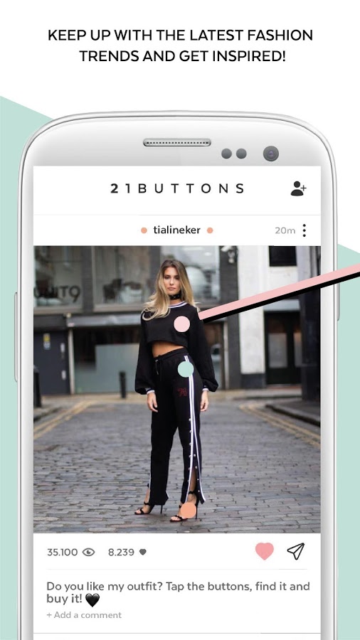 21 Buttons is the ultimate fashion social and shopping network. It provides the tools everyone who loves fashion is looking for and allows you to buy everything that your friends and influencers have shared with just a click. Discover the style that inspires you most Follow your friends and favourite influencers to keep up with the latest fashion trends and discover what’s trending this season. Tap it & Buy, Save or Combine it! Wonder no more. Every look posted is shoppable! Discover what other buttoners are wearing and buy it, combine it or save it in your wardrobes. Discover the style, get inspired and get updated with the latest trends Follow your friends, popular influencers, famous bloggers and favourite instagramers like Dulceida, Emitaz, Goicoechea22, Nastilove or Cristinamusacchio… Discover what your favourite influencers are wearing every day!