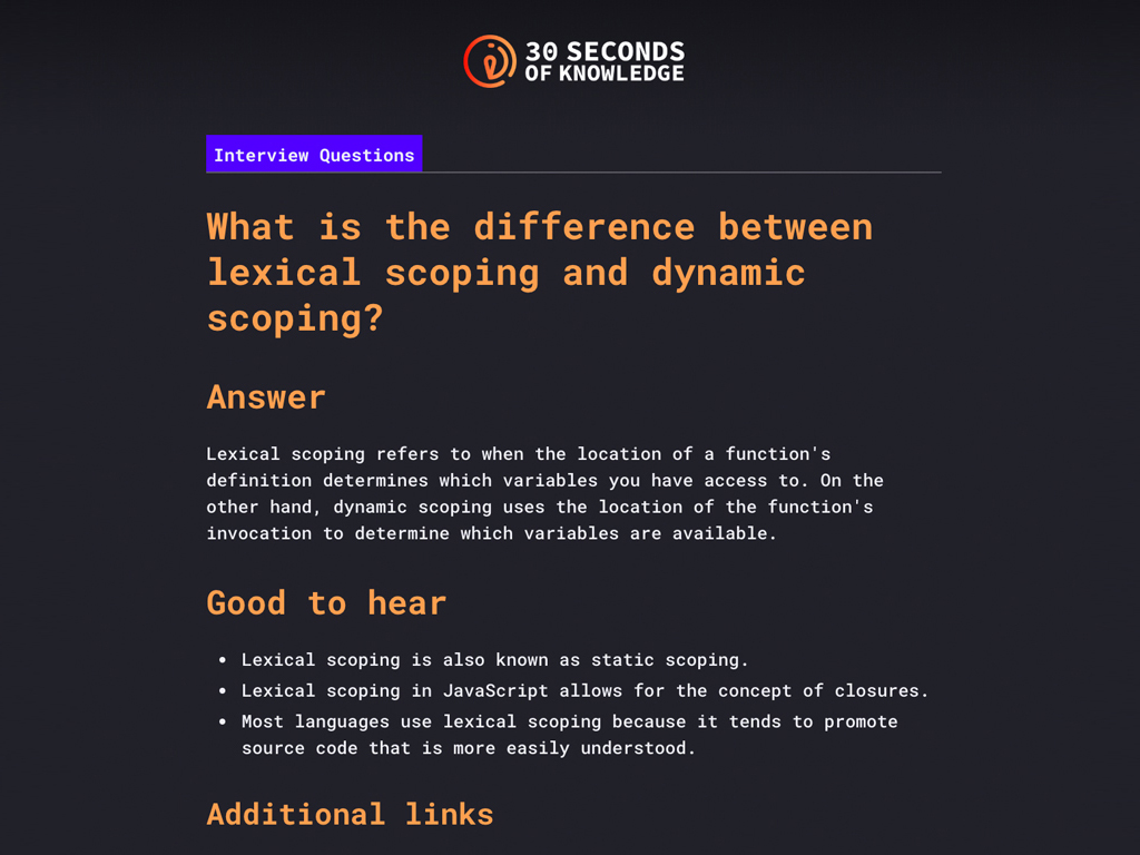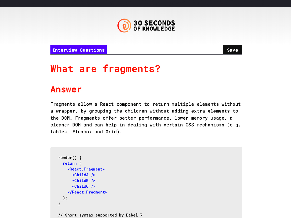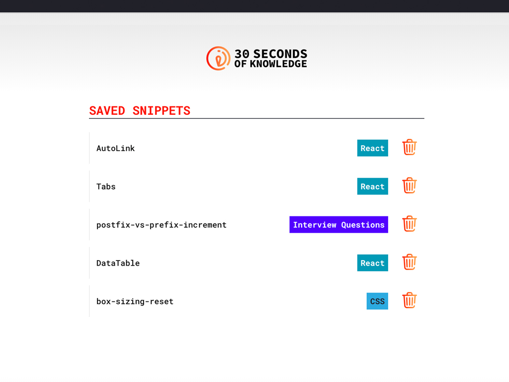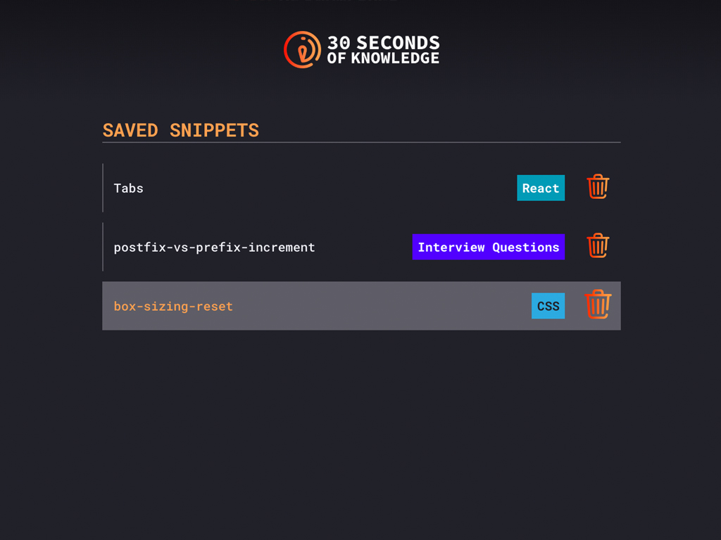 Gain new developer skills every time you open a New Tab! Choose which programming languages you want to get better at, in extension options, and get smarter every time you open a New Tab. All you need is 30 seconds to read and understand snippets of code and improve your knowledge. Saw something useful? Just copy/paste it into your code and you're golden!
