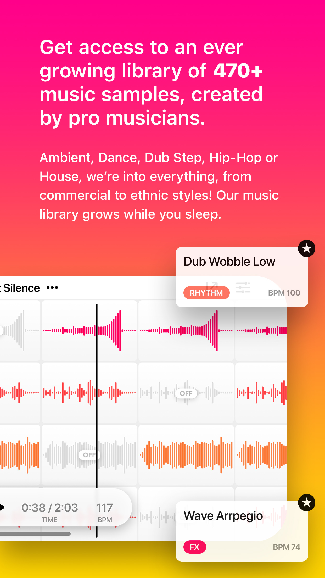 4Beats — the absolutely easiest and powerful way to create your own genuine songs, anytime, anywhere. Start for FREE with 270 complimentary music samples, created by professional musicians. Go on, discover your talent for music! We’ve created 4beats with the idea to empower the silent creators like you. To help grownups and kids fall in love with music making and acquire priceless skills in the process — consistency, focus, sense of rhythm, originality, to name a few. 4Beats is specifically designed to let you create complete songs with such ease, because we’re aware how important motivation is for any beginner. Just focus on your craft, we’ve taken care of the rest. That’s the essence of 4Beats. Need a song for your vlog, or an original theme for your upcoming indie game? Maybe a special gift for your loved one? With 4Beats literally everyone can create their own genuine songs in minutes and share with friends and the World.