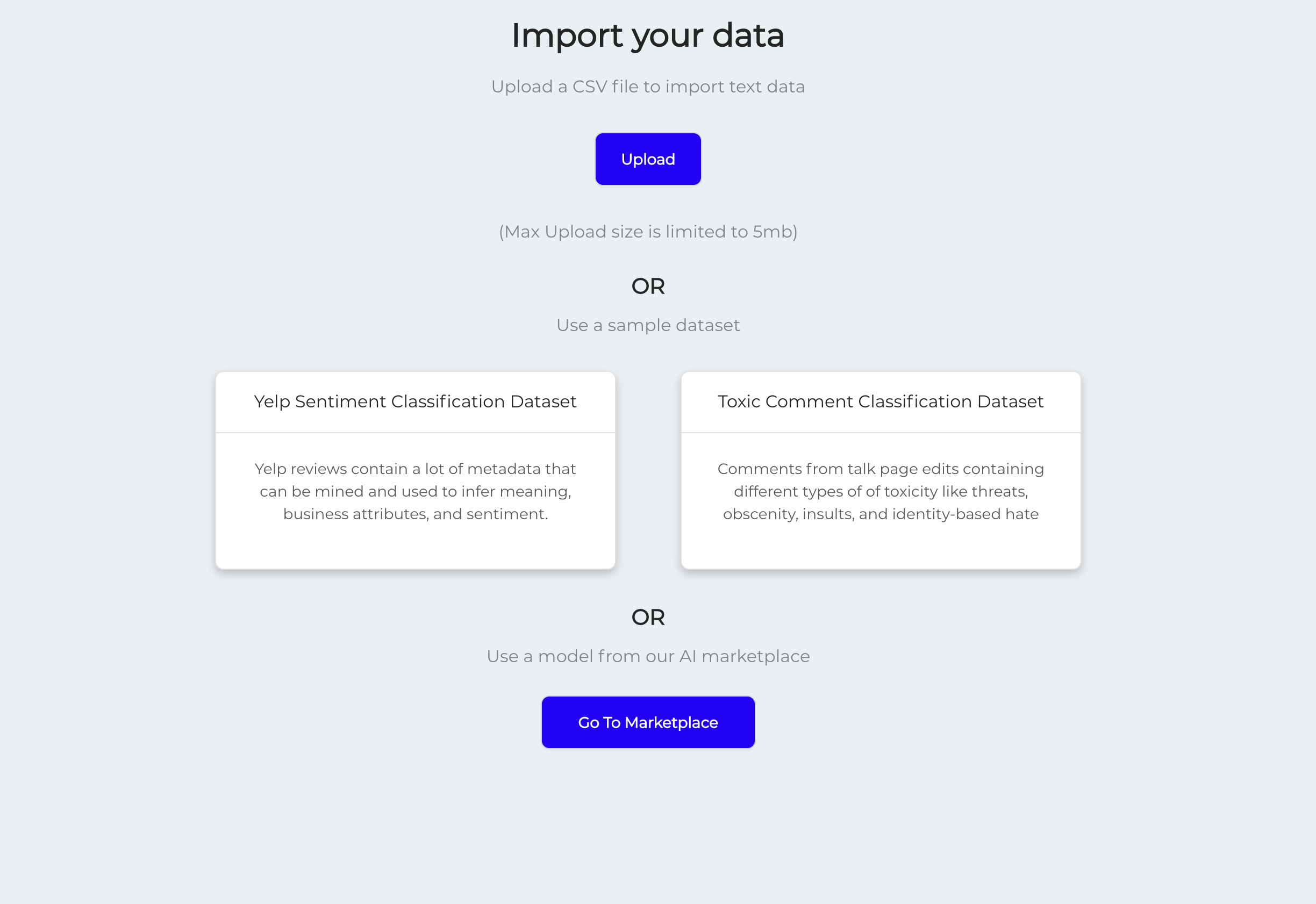 Aasaan.ai provides a platform to build, train and deploy data(text or audio) classifiers without writing a single line of code. For building these classifiers, aasaan does not require the user to have lots of labeled data and allows them to use custom labels. Users can just upload their data (for eg customer reviews), add the labels (for eg. Positive, Negative and Neutral) and label only 50 examples or use the labels in their dataset and receive trained data classifiers. Finally, the users can use these classifiers without having to worry about GPUs, deployment or managing cloud infrastructures.