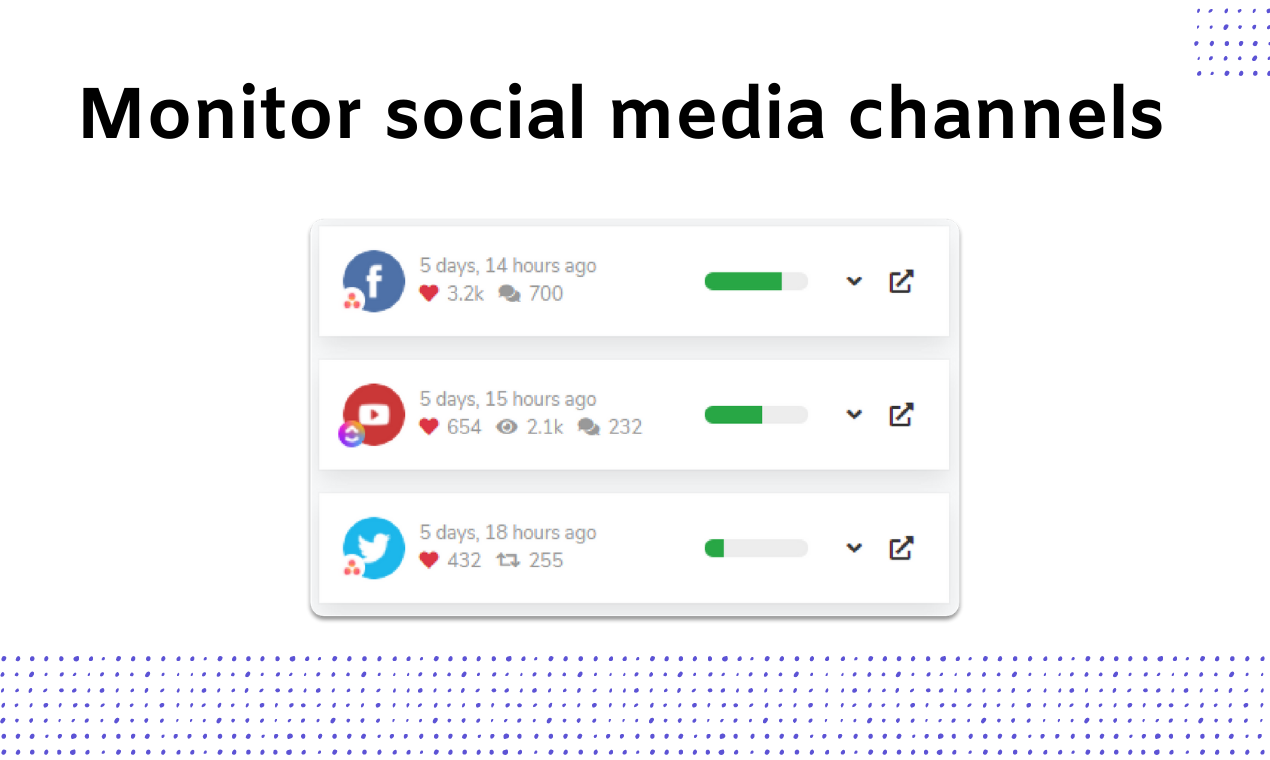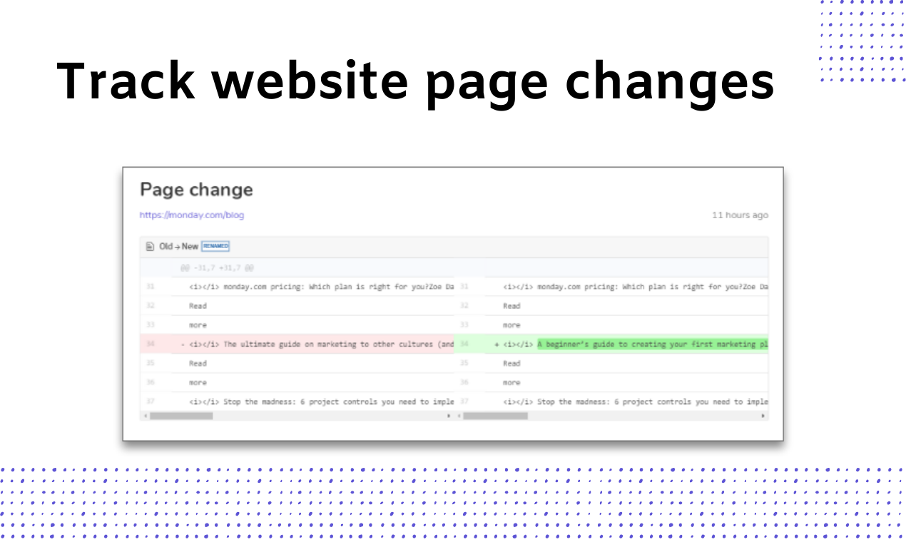 Accordably monitors your competitors’ website changes, social media posts and newsletters all on one streamlined dashboard. We filter through the junk and send you a weekly report that highlights your competition’s most engaging marketing activities. Focus on growing your business and leave the tedious task of competitor tracking to us.