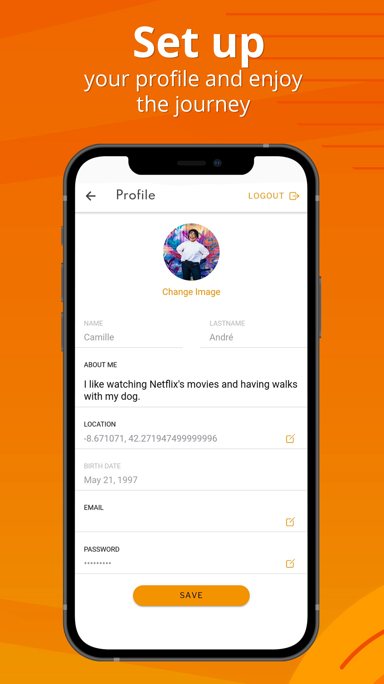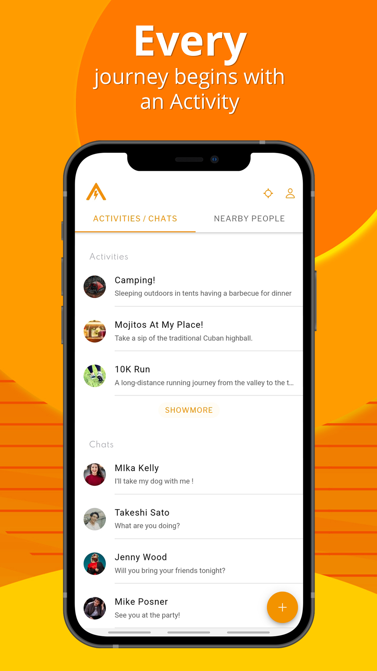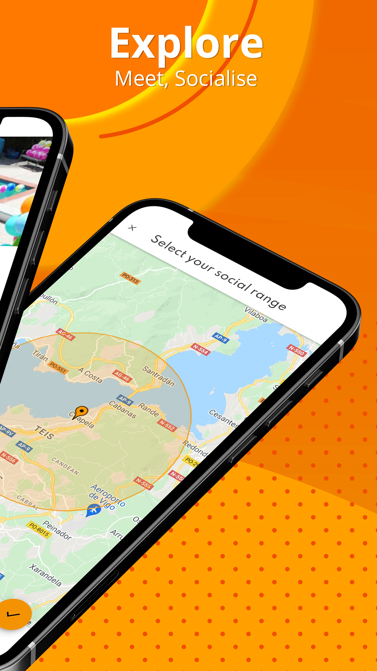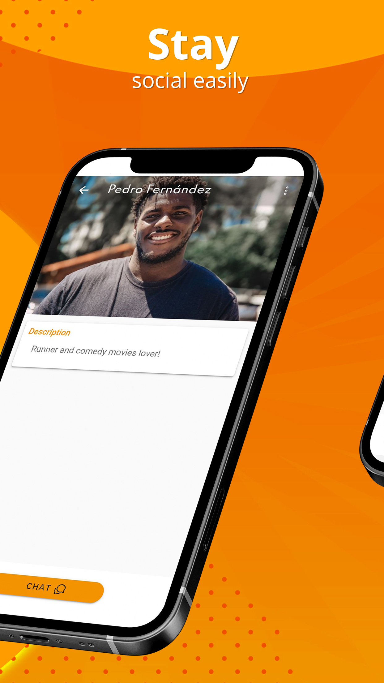 An app to be tested with at least one person inside the social range of the user. To join each other social activities.