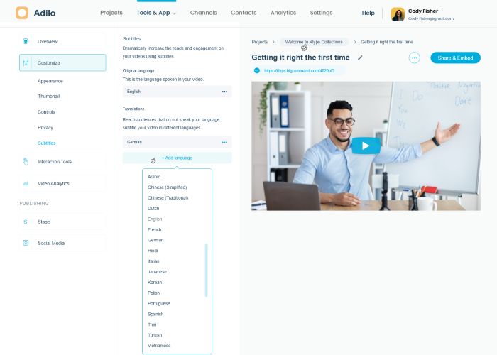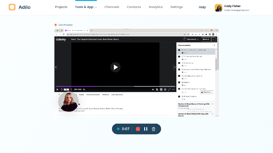 Adilo is a secure video hosting platform for content creators, coaches and businesses. Benefits of Adilo - Video, audio & podcast hosting - Ad-free video streaming - Stunning video player with unlimited customizations - Unlimited HD video & audio recording - Automated video captioning - Multi-users & team collaboration - Stream on your own domains - Powerful video call to actions - Video Premiering & content scheduler - Build content hubs, get unlimited subscribers & send unlimited broadcast - Video API