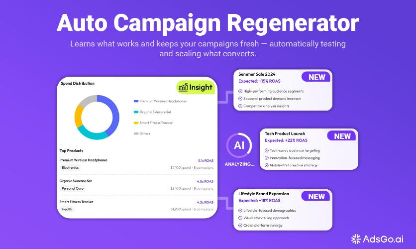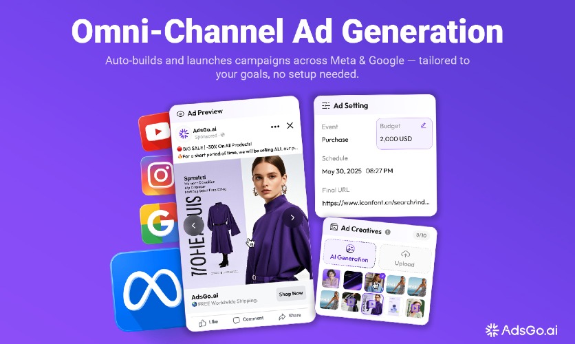 "AdsGo AI — The World's First AI Ad Agent for Small Business AdsGo AI is a fully automated advertising platform that handles everything your ad campaigns need — from strategy and creative to targeting, budget allocation, and continuous optimization. It's built for online sellers, DTC brands, local businesses, and growing teams who want real results without the complexity. How it works: Simply paste your product URL. In under 5 minutes, AdsGo AI analyzes your product, audience, and market, then automatically builds and launches campaigns across Google Ads and Meta Ads. No marketing experience required. No expensive agency needed. What makes AdsGo different: • Multi-Agent Analytics — Simulates a team of experts to analyze your product, audience & market • Omni-Channel Ad Generation — Auto-builds campaigns for Google & Meta with no manual setup • AI Creative Studio — Generates pro-level headlines, visuals & ad copy tailored to your brand • ROAS-Based Budget Allocation — 24/7 auto-optimization of bids & budgets to maximize returns • Auto Campaign Regenerator — Keeps campaigns fresh with weekly strategy & creative updates • AdsGo Mobile — Create and launch campaigns on the go Real results: Trusted by 500+ brands including teams from Alibaba, ByteDance, SHEIN, and PopMart. Over $1.5M in ad spend managed through the platform. Users report an average ROI of 300%+ within the first two weeks. Who it's for: Small businesses, e-commerce stores, local services, SaaS products, and mobile apps — anyone who wants to run effective paid ads without hiring a team or learning complex ad platforms. Free trial available. No credit card required."