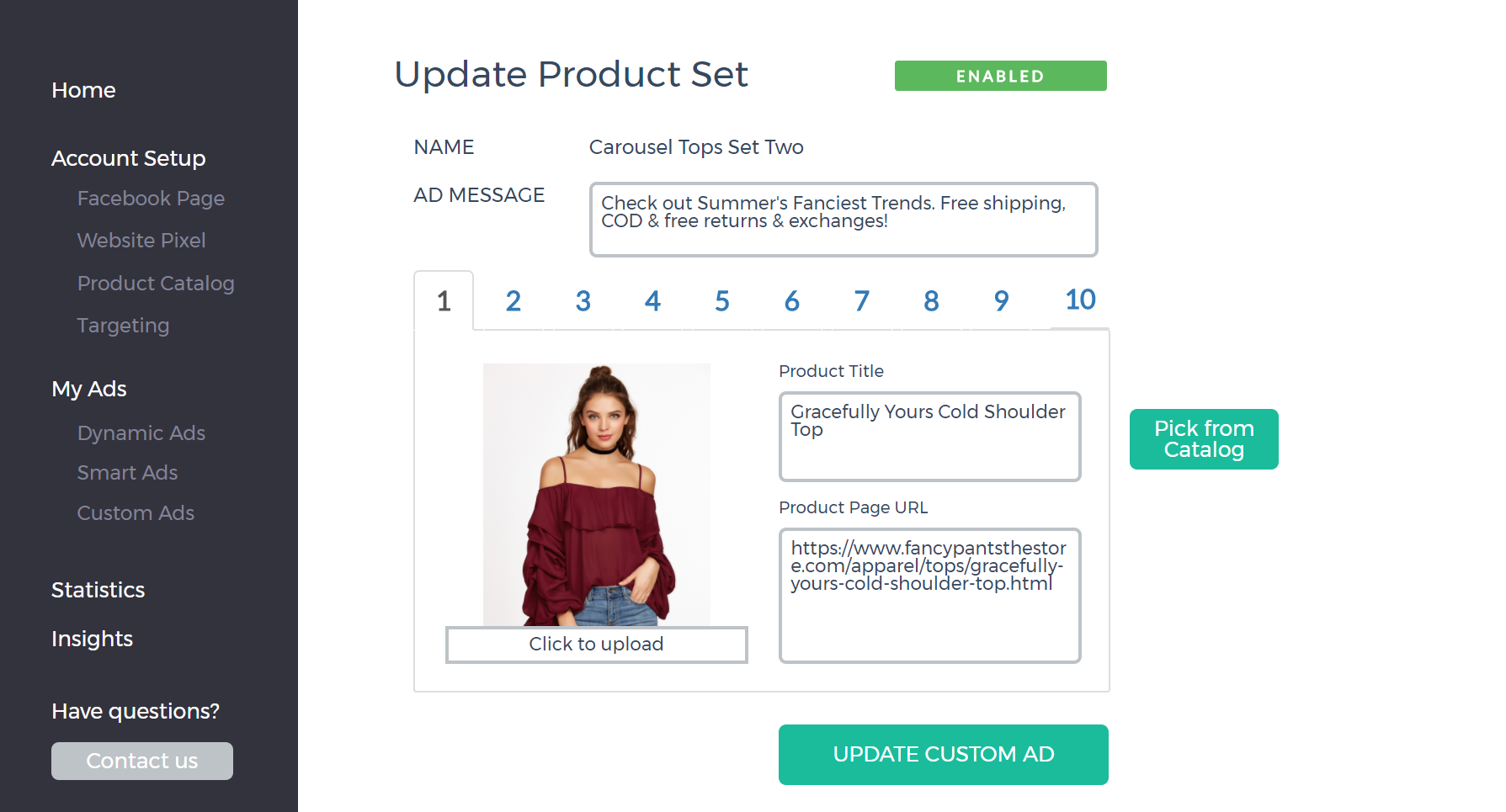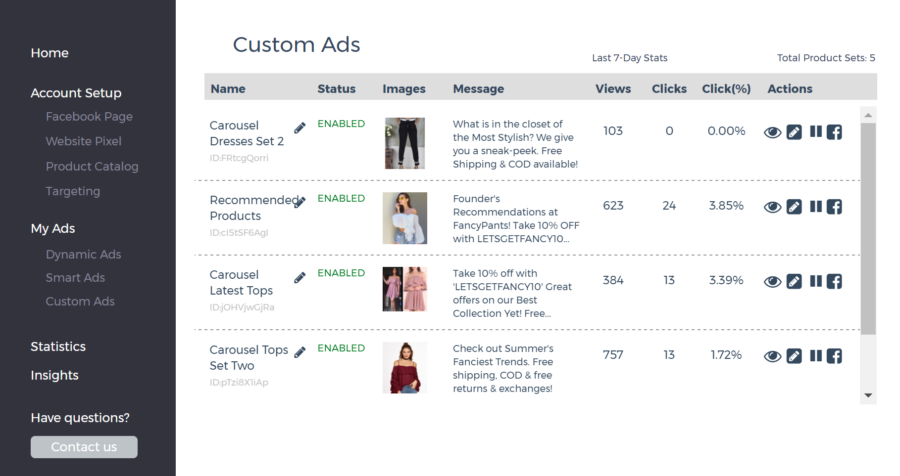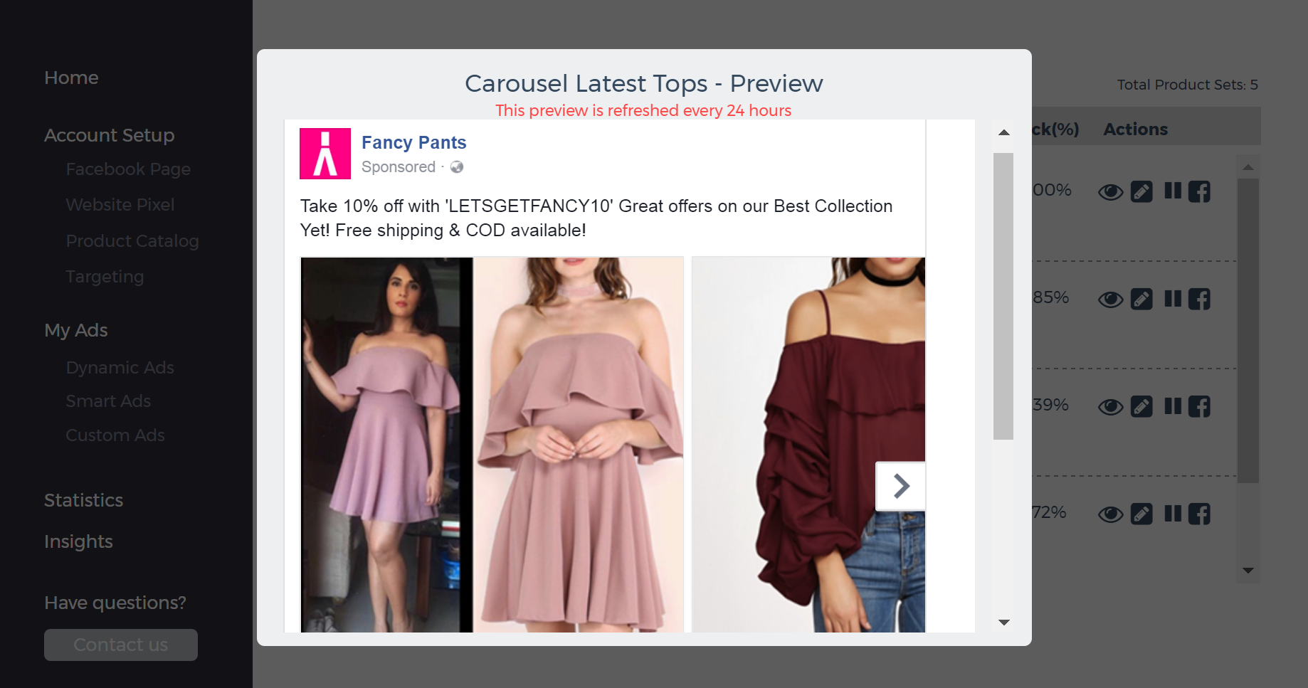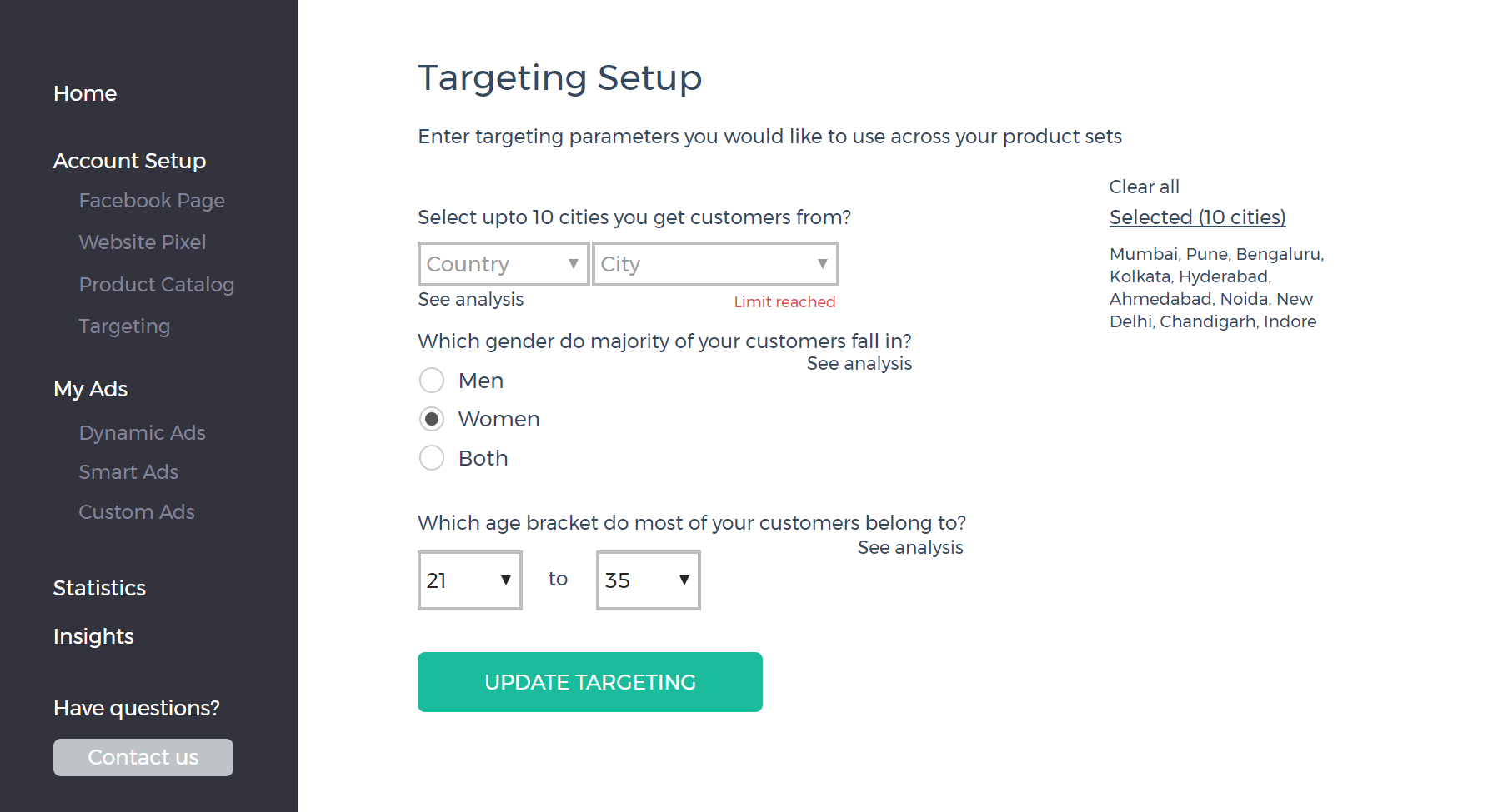 E-commerce firms today find it difficult to get best returns from their social media campaigns. AdYogi automates process of setting up ads on Facebook and Instagram and optimizing it for best performance. AdYogi is targeted at Small to medium e-commerce stores which want to generate sales on their website using Facebook and Instagram ads in the most efficient manner. Our pricing starts from as low as $100 thereby saving on the fixed costs of setting up a marketing team. AdYogi instantly syncs with any online website to create a product catalog. Our proprietary algorithms help in identifying top product categories & finding the relevant target customers. We dynamically allocate budget using Machine learning tools between different targeting options to maximize returns. Our clients have consistently seen much higher ROIs using AdYogi than what they otherwise get.