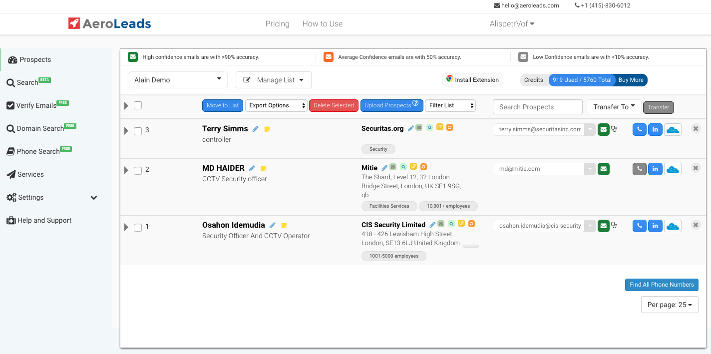 AeroLeads is a b2b email finder and phone number finder of individuals and businesses. With 1 click, you can 1. Search Data to find emails and phone numbers 2. Build a prospecting list from LinkedIn, CrunchBase, AngelList, Github etc. AeroLeads also offers free tools to verify emails, find phone numbers and finding business address etc.