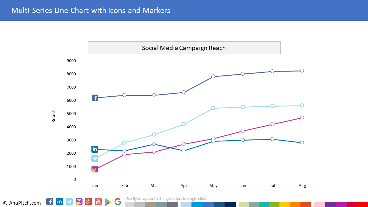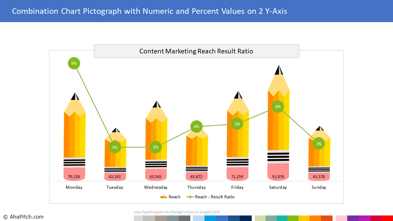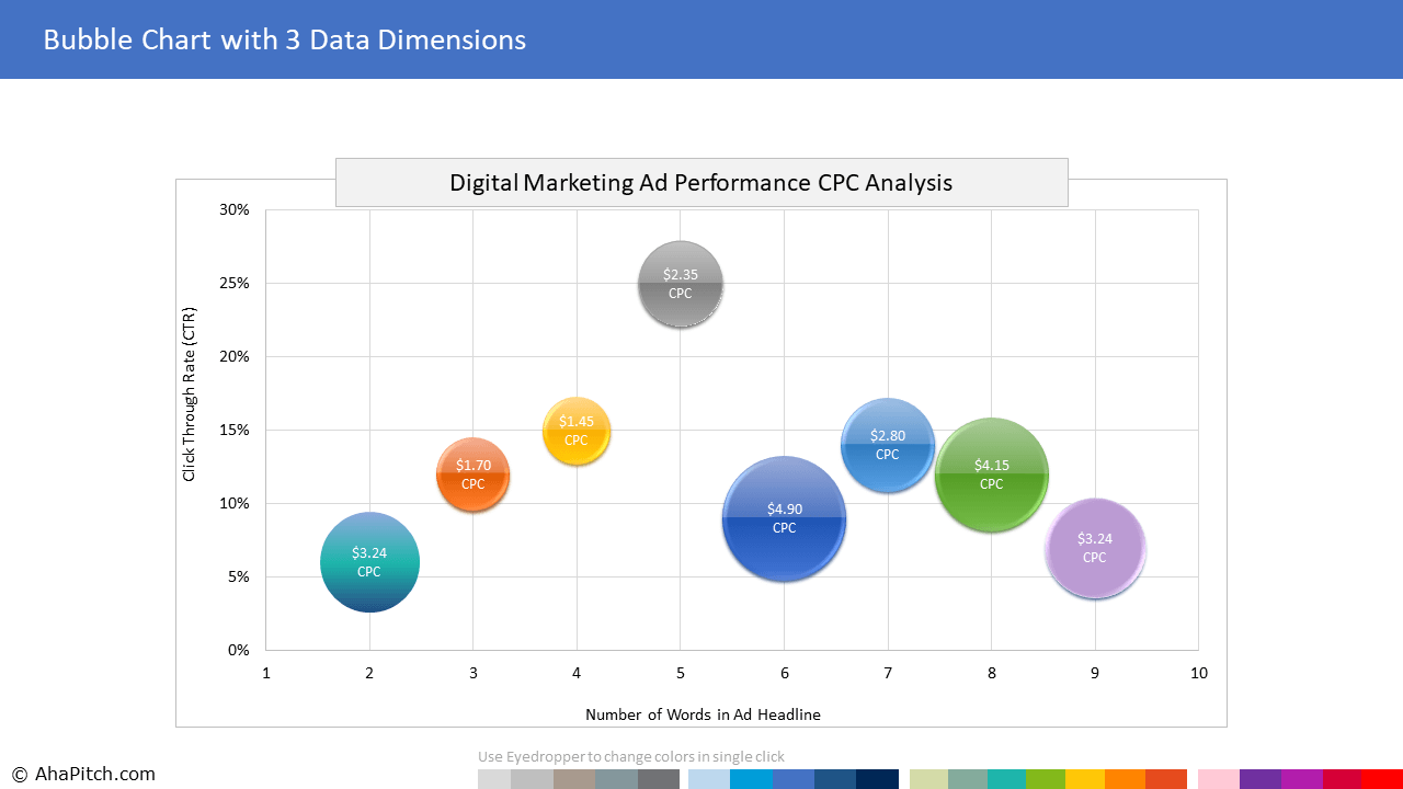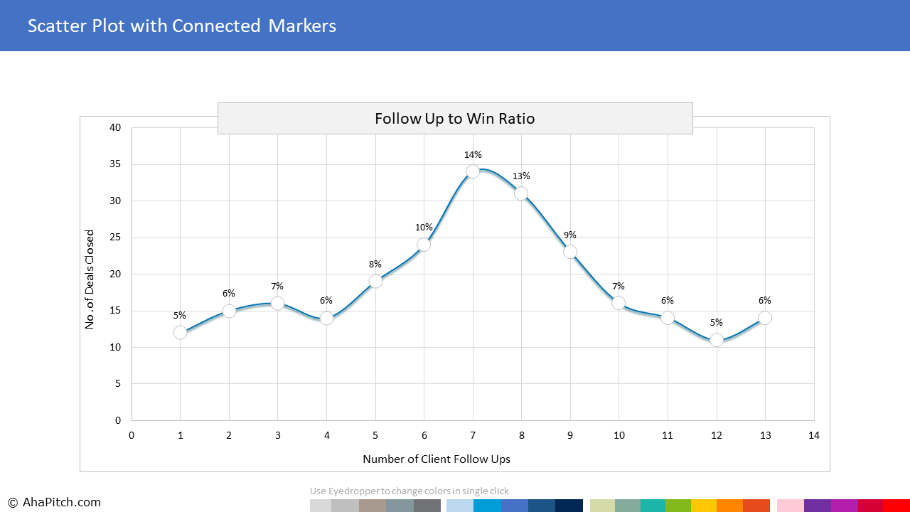 AhaPitch offers beautiful, improvised and professionally formatted PowerPoint chart templates that make the process of creating charts easy and fast. Spend less time on creating charts and more time doing the work you love. Brilliant data analysis often falls short of making an impact if the findings and insights can not be communicated effectively to the target audience. Your data presentation can be a deal maker or a deal breaker. The stand out professionals not only possess strong analysis skills but are also great at storytelling with data. On the other hand, novice professionals simply paste charts from native platforms into PowerPoint. Some spend hours to create charts in Excel and then paste them as images in PowerPoint. The problem with both these approaches is; even a minor change in data, labels, annotations, colors or fonts leads to back and forth corrections, duplication of work and wasted time. And if any anomalies go unnoticed, it results in inconsistent styling with rest of the PowerPoint, often enough to distract clients and make an important presentation look unprofessional. You don’t want to mess up your brilliant analysis with unappealing charts, do you? What if you could create any data chart directly in PowerPoint, in minutes rather than hours. There has to be a better way. That’s why we created this library of professionally pre-formatted, 100% data driven, ready-to-use chart templates for PowerPoint, so that you can create professional reports, dashboards and presentations quickly and deliver a visual experience that will resonate with the audience.