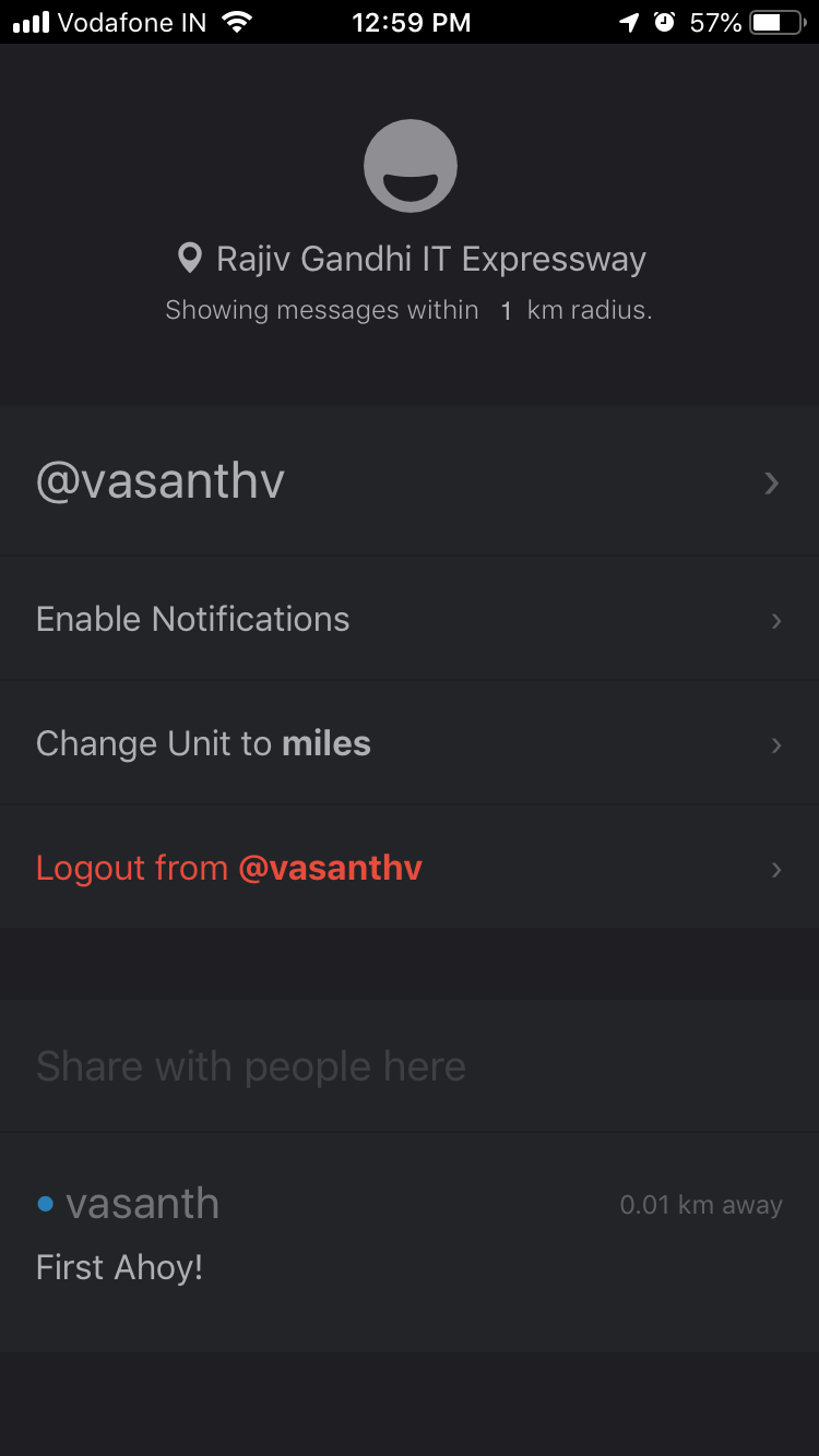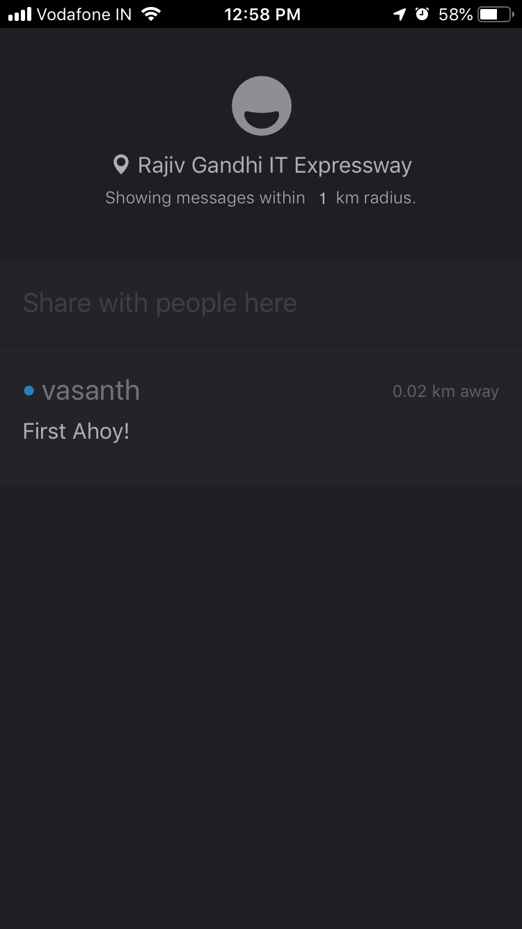 Ahoy lets you chat with people nearby you. No one near you? No worries. You can also define the distance to connect with people from your city or state or even country.