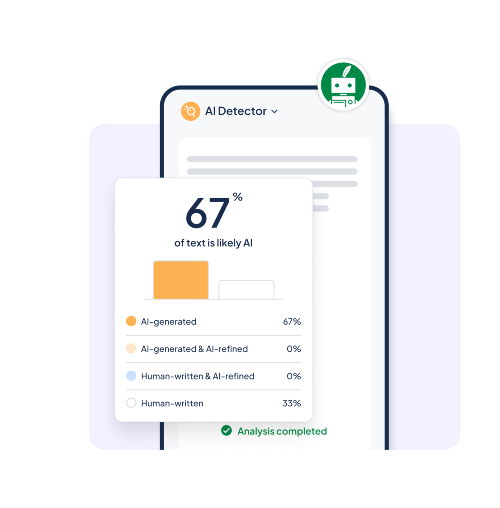 QuillBot’s AI detector is a simple, free-to-use online tool that helps users understand whether their text is likely written by a human or generated with AI. Without requiring an account, it allows scans of up to 1,200 words and delivers clear probability results showing if content appears AI-written, AI-edited, or human-created. This makes it especially useful for students, educators, and content creators who want a quick originality check before submitting or publishing their work. What sets this AI detector apart is how smoothly it connects with QuillBot’s broader writing tools. Users can immediately refine flagged content using features like the Grammar Checker, Paraphraser, or Plagiarism Checker, all within the same platform. From academic writing to marketing copy, QuillBot provides an easy and efficient way to review, improve, and maintain authentic content.