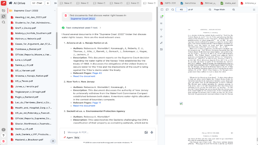 "AI Drive: Revolutionize How You Manage and Analyze Documents Product Benefits: AI Drive is the ultimate platform for managing, analyzing, and interacting with your documents using cutting-edge AI technology. Whether you're a researcher, professional, or student, AI Drive empowers you to: Centralize Your Files: Bring all your documents and folders together in one secure place. Leverage Top AI Models: Chat with advanced AI models like GPT-4o, o1-preview, and Claude Sonnet to summarize, analyze, and extract insights from your files. Save Time with Automation: Automatic OCR converts scanned PDFs into searchable text, while AI-generated file titles keep your library organized. Enhance Productivity: Pro plans include an AI Agent to assist with research, organize files, and perform folder-wide searches across hundreds of PDFs. Lifetime Storage: Keep your files as long as you need with military-grade encryption for maximum privacy and security. How It Works: Upload Files and Folders: Easily upload multiple files or entire folders, even large ones, to your AI Drive account. AI-Powered Analysis: Use AI models to summarize, search, and analyze your documents. Chat directly with your files to extract key insights. Organize and Search: Automatically generate file titles, perform folder-wide searches, and use the AI Agent to organize and manage your documents. Collaborate and Share: Share files securely with colleagues or clients with our Teams plan while maintaining full control over access. Pricing: Free Plan: Includes basic features like file uploads, AI PDF Summarizer with Google Gemini. Pro Plan: Unlock advanced features such as OCR, Folder Search, advanced AI (o1, Sonnet) and AI Agent for research and organization. $19.99/month or $149/year (save 38% with annual billing). Why Choose AI Drive? Trusted by over 500,000 users, including top universities and businesses. Built with privacy in mind, featuring 256-bit AES encryption. Lifetime storage ensures your files are always accessible. Cutting-edge AI models provide unparalleled document insights. Get Started Today! Transform how you manage and analyze your documents with AI Drive. Sign up now and experience the future of document management!"