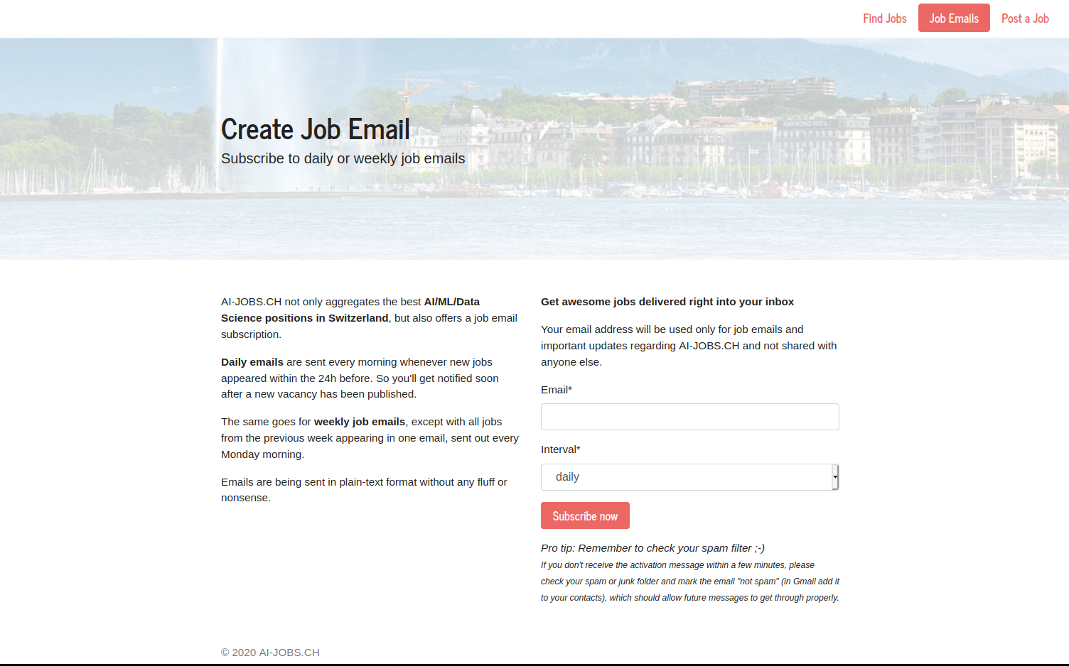 AI-JOBS.CH aims to be the go-to resource for discovering awesome AI/ML/Data Science jobs in Switzerland. The idea behind AI-JOBS.CH is to provide an ultra-focused, fast and lean job site with a super-simple job email service. All without any fluff or nonsense. Listed jobs are carefully aggregated from selected sources and appear on the front page for 45 days to always keep your job search fresh.