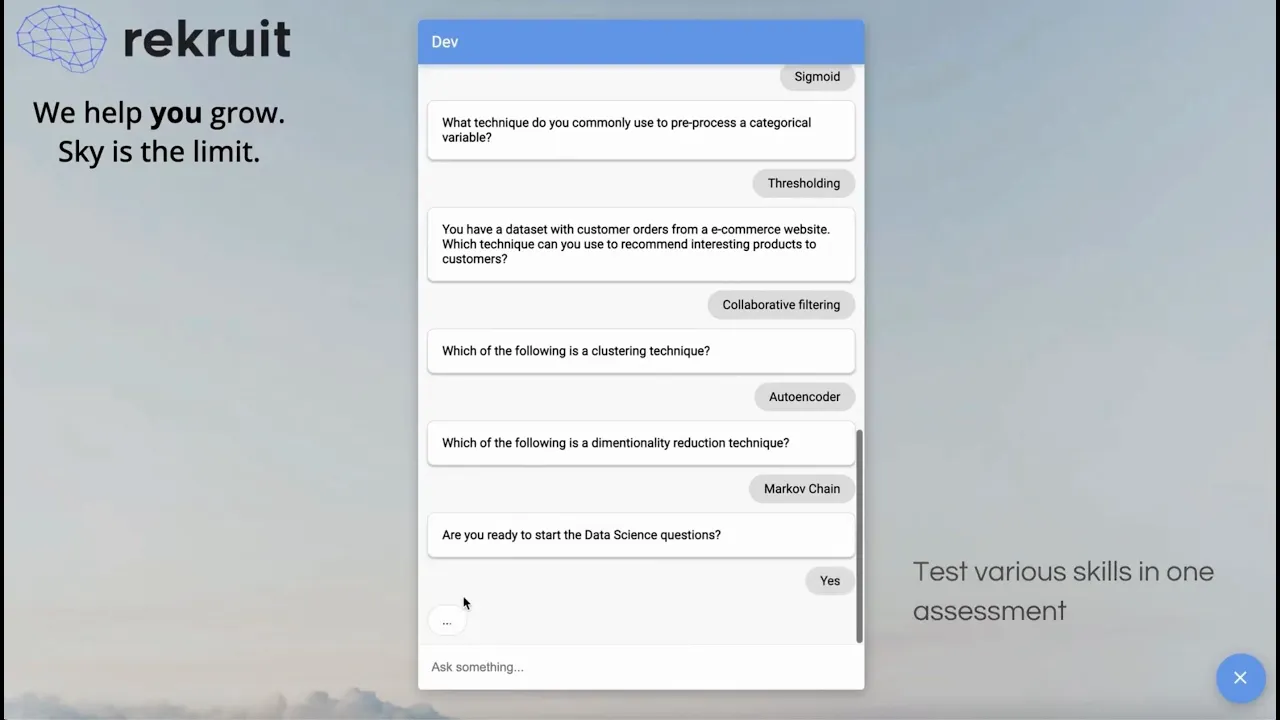 Rekruit is an AI-based virtual assistant, designed to make hiring easy, fast, and bias-free. It uses an advanced chatbot to conduct the screening process, shortlists the best candidates, and provides you with key hiring metrics.