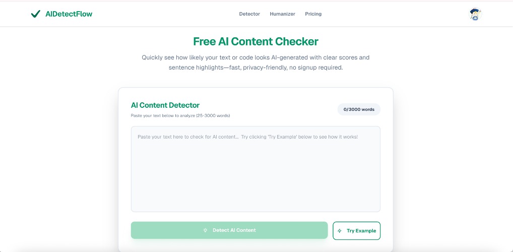 AIDetectFlow helps you check how likely your writing looks AI-generated. The tool provides sentence-level highlights to show exactly which parts of your text may appear machine-written. After detection, you can optionally send your text to the humanizer to achieve a more natural rewrite. This allows you to maintain a professional and human tone across all your written content.