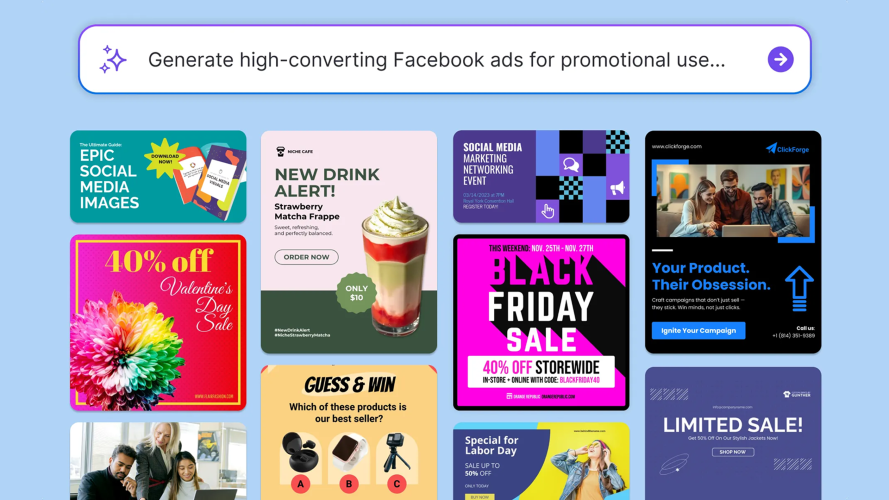 Venngage’s AI Facebook Ad Generator helps marketers and businesses create clear, effective Facebook ads from simple prompts. It streamlines ad creation by generating ready-to-edit visuals and copy that align with common Facebook ad formats, making it easier to launch campaigns faster and stay on brand. Key Features - Prompt-Based Ad Creation: Generate Facebook ad visuals and copy from a few simple inputs. - Ad Format Optimization: Produces ads sized and structured for Facebook’s recommended specifications. - Auto Branding: Apply your brand colors, fonts, and logo to ad designs automatically. - Customizable Templates: Edit visuals, text, and layout using an intuitive editor. - Audience-Driven Suggestions: Get AI recommendations for ad elements based on your campaign goal. - Accessibility-Friendly Design Tools: Ensure readable text and clear contrast for inclusive creatives. Benefits - Speed Up Ad Production: Create campaign-ready ads in a fraction of the time. - Boost Consistency: Keep visuals and messaging aligned with your brand across ads. - Support Non-Designers: Enable team members without design skills to produce polished ad creatives. - Improve Campaign Clarity: Use structured visuals and guided copy to communicate effectively. - Scale Ad Testing: Generate multiple ad variations quickly to support A/B testing and optimization.