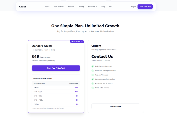 Aimey is an intelligent AI Media Engine for Google Ads. Designed specifically for small business owners, it reduces the barriers to high quality, enterprise-grade Google Ads campaigns by providing "Service as a Software". Aimey fully automates digital campaign management for small and medium businesses. Our platform is able handle complex setup, 24/7 algorithmic optimization, creative asset generation and executive reporting for a transparent, fixed monthly fee and a small media spend based commission. Designed for high-intent verticals like home services, automotive, dentistry, real estate and insurance, Aimey allows business owners to launch professional Google Ads in minutes and for a fraction of the cost of traditional media agencies.