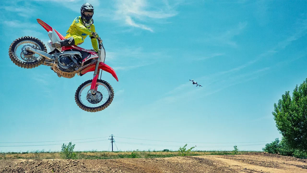 All-terrain, camera drone that follows you in action