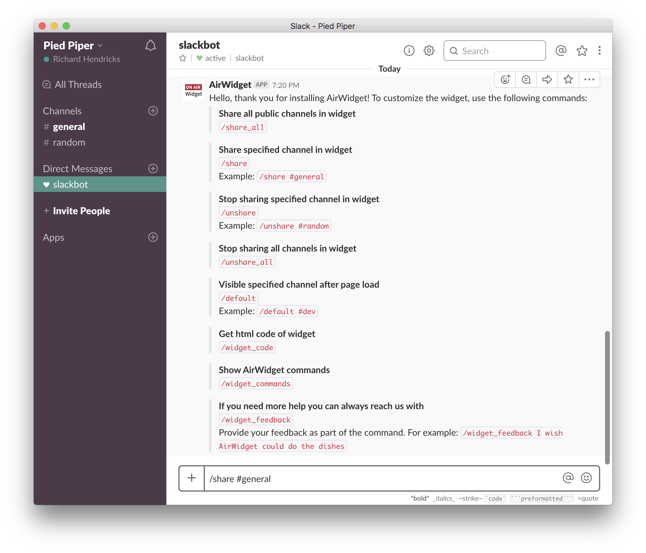 AirWidget broadcasts messages from selected channels in Slack to your site. You can have a channel with news, discussions and with the help of the widget you can broadcast the content, this will make you closer to your community and increase the number of participants. Learn more: https://medium.com/@airwidget/increase-your-community-with-airwidget-for-slack-d205bb6982cd