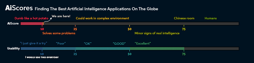 Have you ever wondered what is it like to have an AI assistant that can work for and with you? AI SCORES IS DEDICATED TO FIND THE BEST REAL-LIFE APPLICATIONS THAT COULD BRING REAL VALUE INTO YOUR EVERYDAY LIFE. We test and rank them in order to offer only the best ones to You. The new era of Artificial Intelligence is just appearing before our very eyes and the technology is in front of a tipping point. The technology and AI startup market accelerated, which means that AI is near to productivity phase.
