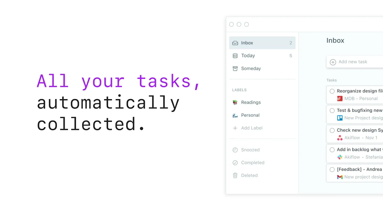 Akiflow is a Tasks + Calendars productivity app ?? Capture tasks from multiple sources ?? Process fast with shortcuts (plan/snooze) ? Increase your focus and personal organization Win+Mac