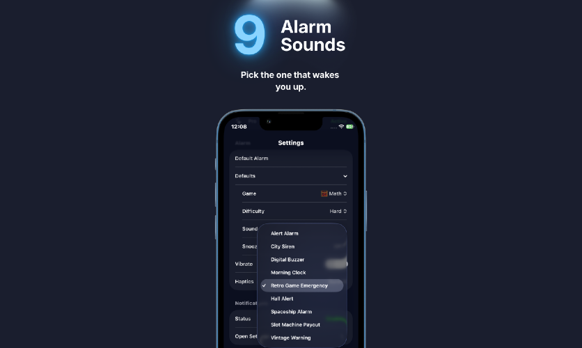 A game-based iOS alarm that only turns off after you beat a mini-game, helping people stop snoozing on autopilot.