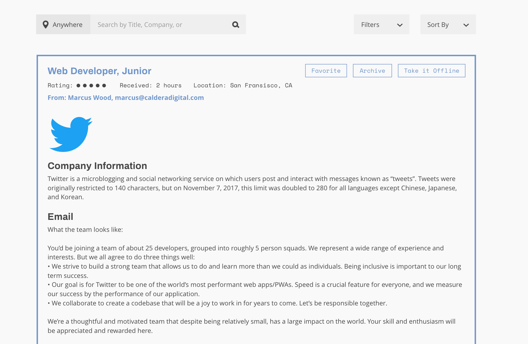 You’ve worked hard on your resume, show it off! Alcamine works by taking all of the inbound opportunities you get from job boards, rating them against what you’re looking for, and sprinkling in special opportunities that we think you’d be a good fit for. Here’s how it works: 1. When you sign up for an account, you’re given an @alcamine.com email address that’s unique to you 2. Place that email on your resume and anywhere you may be contacted by a recruiter 3. Add your job search preferences like location, salary, skills 4. When recruiters reach out, they’ll respond to the @alcamine.com email address where we’ll rate it, add in relevant company details, and place it in your dashboard 5. As you go through opportunities you can rate them, shortlist them, or take the conversation offline