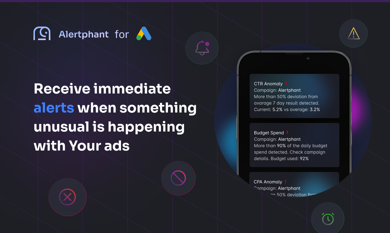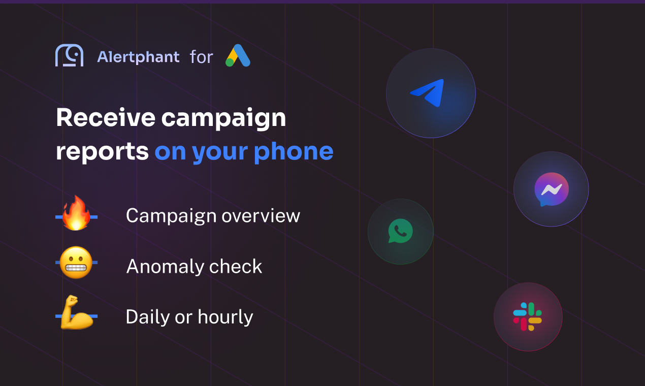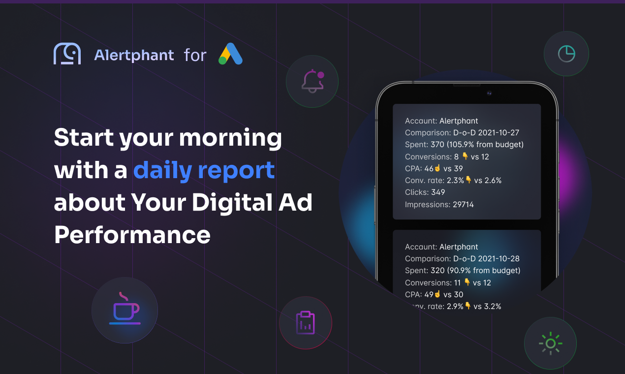 Hey ? I’m David, and along with my data nerd team, we are excited to present you with a tool that notifies you immediately when something unusual is happening with your ad campaign - AlertPhant. ? ? PROBLEM Digital advertising is one of the most expensive ways to acquire new clients, but there aren’t many control mechanics to keep your digital ads on a leash. Almost all advertisers have encountered accidents when something’s not working with their ads or advertising platforms like Google decided to spend your daily budget three times in a few hours. As a result of that, your money is being spent unwisely. ? SOLUTION Our data scientists decided to create a product that will send you daily notifications about your Digital Ad campaign performance. ? • You'll start your morning with a daily report about your ad performance (and even compare it to the day before) • You'll receive a notification when something unusual is happening with your ad campaign. (No more missing critical campaign signals again) Messaging Platforms: Telegram (Now) Slack (Coming Soon) Whatsapp (Coming Soon) more to be added? (mention in comments below) Advertising Platforms: Google Ads Facebook (Coming Soon) more to be added? (mention in comments below) ? PRICING • Free