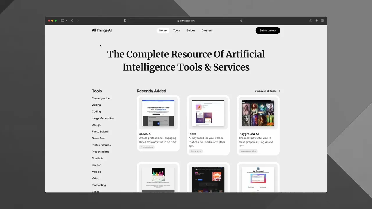 AllThingsAI is the place to discover artificial intelligence tools and services for entrepreneurs, startups, and small businesses. The products and services available on AllThingsAI cover a wide range of categories, including marketing, design, productivity, project management, customer support, social media, and more. Users can find tools for website optimization, email marketing, graphic design, SEO, automation, and other business-related needs. AllThingsAI's mission is to help entrepreneurs and small business owners find cost-effective solutions to improve their productivity, efficiency, and growth potential.