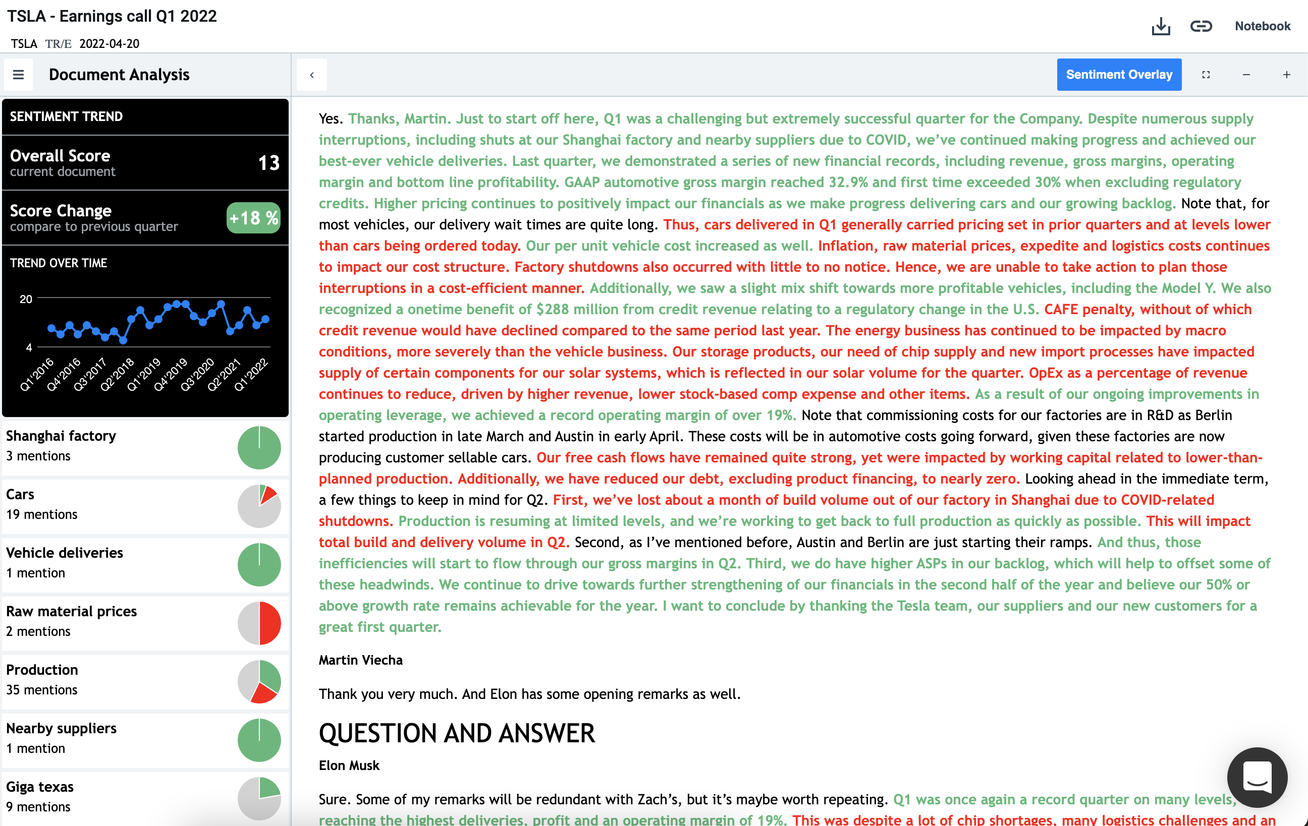 Document Search AlphaResearch provides an unparalleled AI-powered search engine for everything text. We scan through millions of global filings, transcripts, press releases and reports to find the exact insights that you are looking for. Company Fundamentals & Estimates Access global institutional-grade fundamental data, market data, news and analyst's estimates for financial modeling, and stock research. Advanced Data Analytics We apply Machine learning and NLP techniques to extract insights from texts and traditional fundamental data to save you hundreds of hours of research and understand what executives and market think about the future of the company.