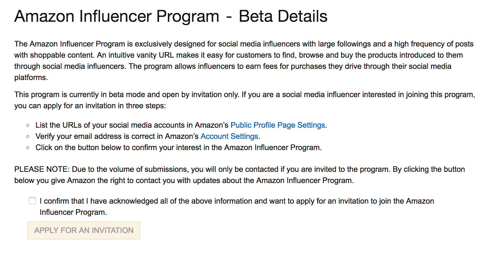 Amazon Influencer Program is exclusively designed for social media influencers with large followings and high frequency of posts with shoppable content.