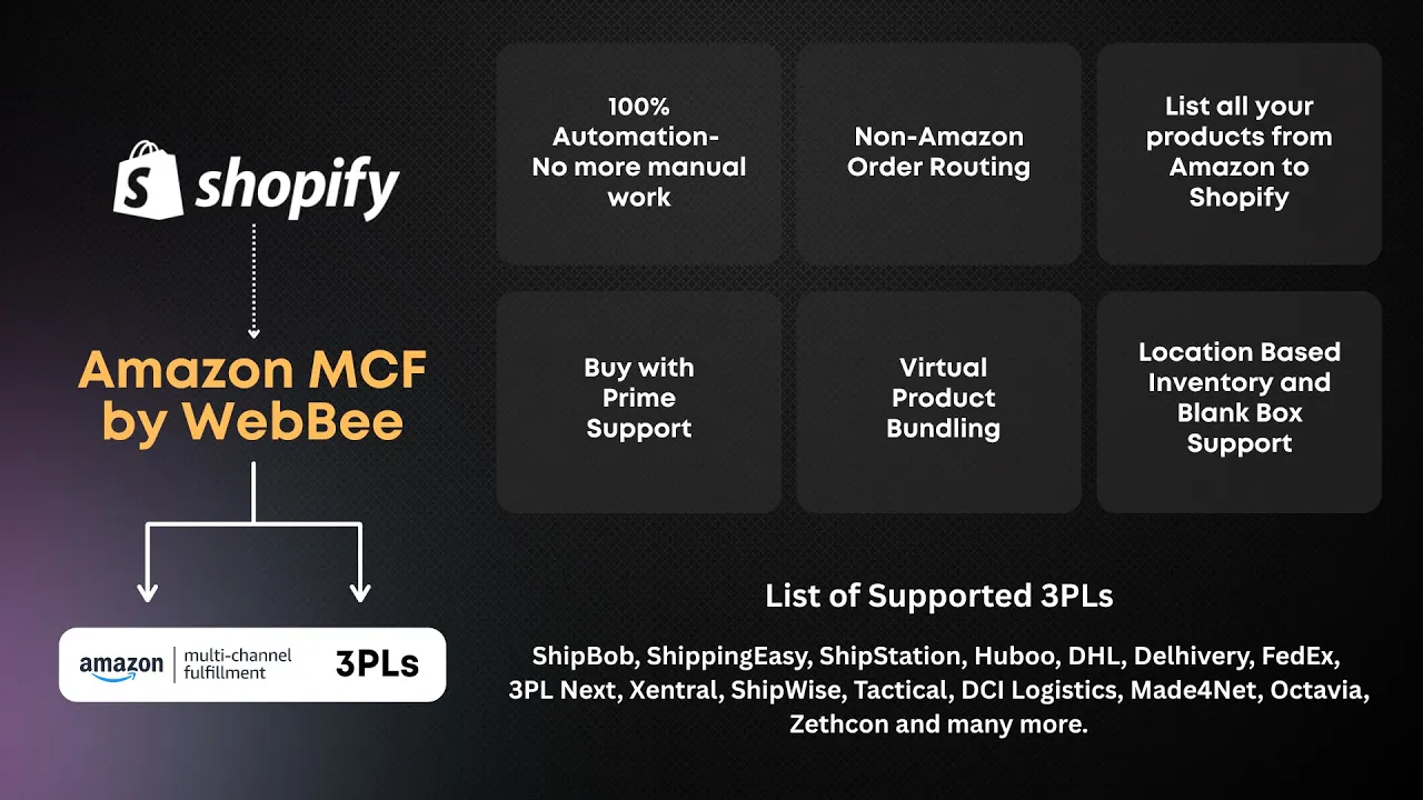 Optimize your store orders with Amazon's scalable shipping solutions through MCF by WebBee. Effortlessly link to Amazon fulfillment using our integrator. We cater to a range of features including Bundles, subscription orders, and post-purchase upsells, all designed to amplify cart value. Harness the full potential of each channel and optimize your e-commerce experience.