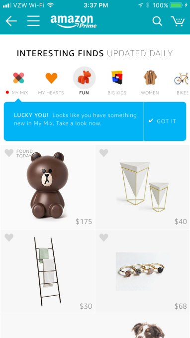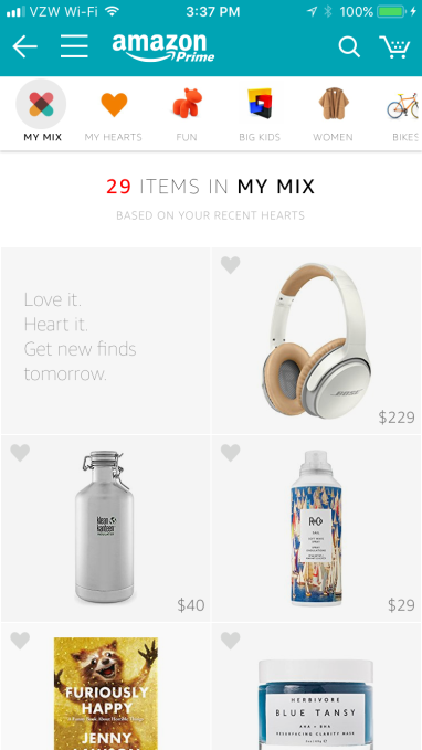 Amazon has quietly launched a new feature offering shoppers personalized suggestions of products they might like to buy, called “My Mix". Amazon added a feature called “My Mix,” which is informed by your favoriting activity. As you like more items across “Interesting Finds,” Amazon builds you a custom shop with other items it thinks you might like, too. The “My Mix” feature, which launched in May, is available on desktop, iOS and Android.