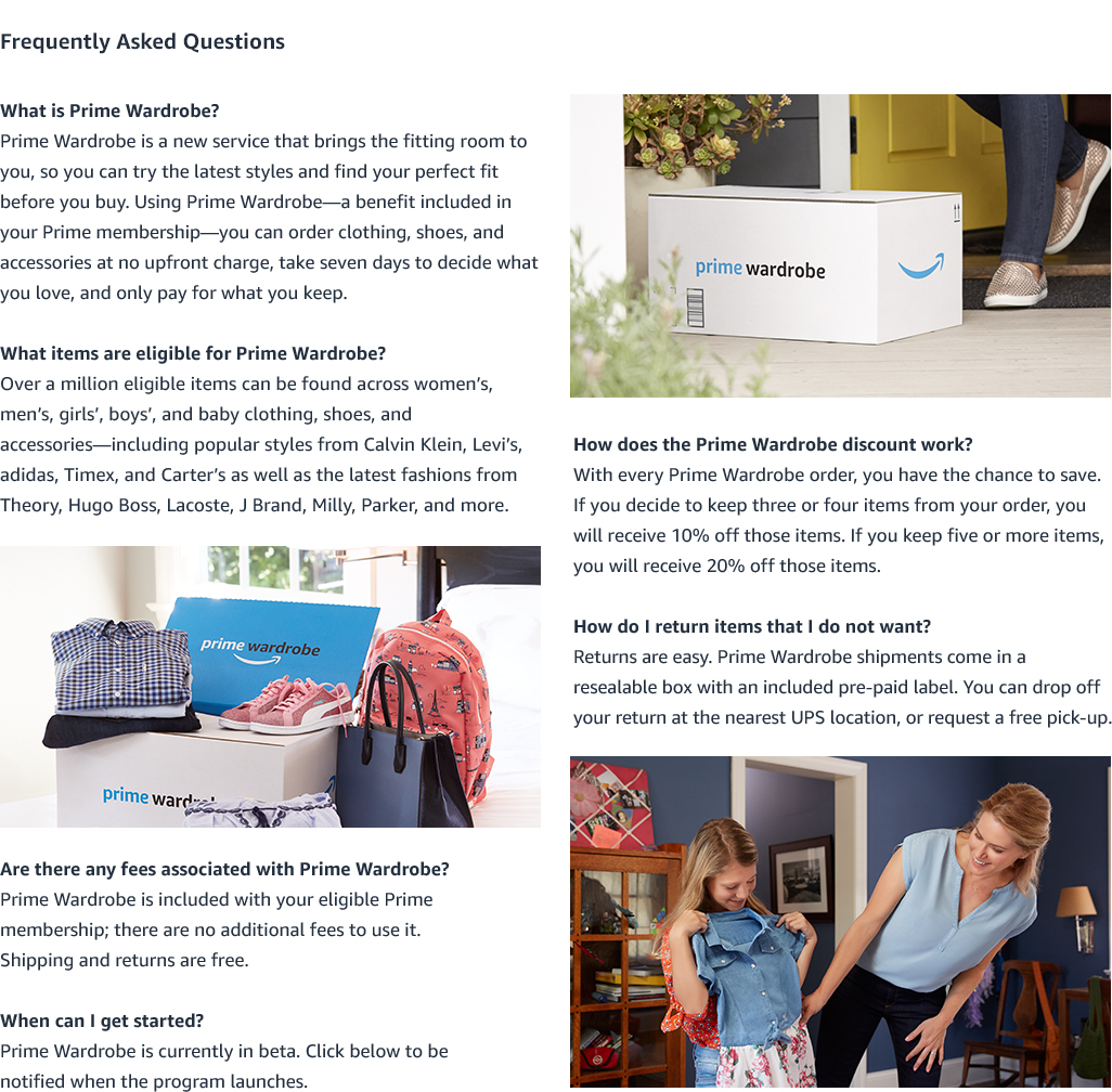 Introducing most fashionable Prime benefit. - Try before you buy - Free, easy returns - Save up to 20%