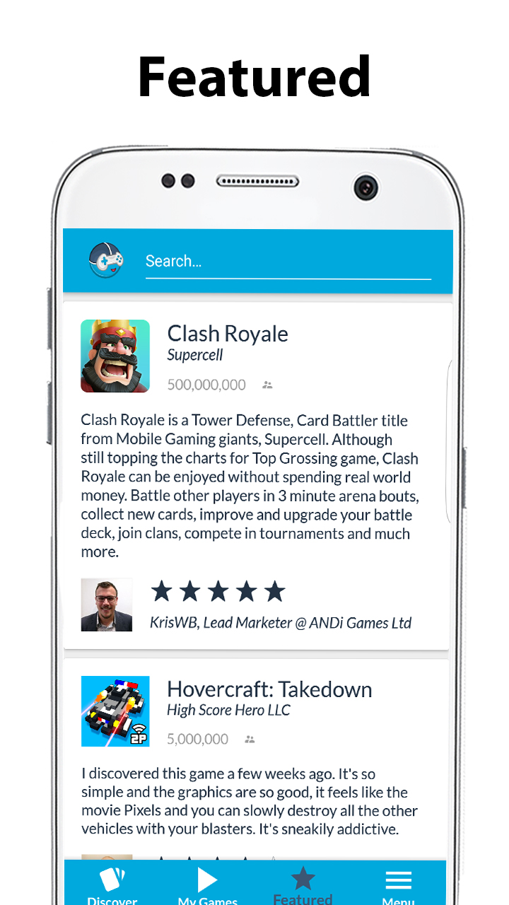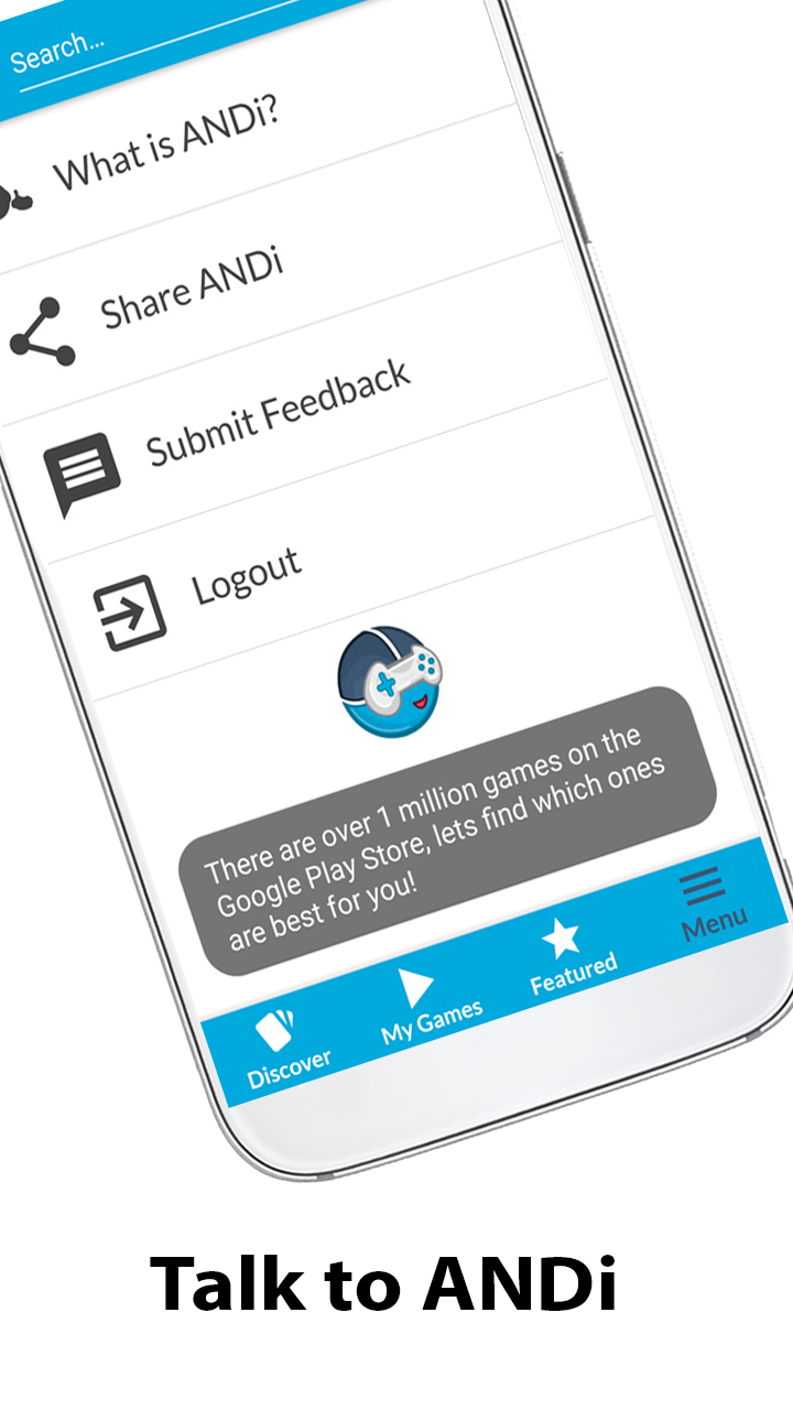 AI Powered Game Discovery! * Using an assertive UI, ANDi is powered by modern Machine Learning & AI technologies. * ANDi learns from your actions, and when you play games to tailor your experience. * ANDi provides a convenient location to launch your favourite games. Never Search Again! * Keep swiping left or swipe right to discover games you’ll love. * All links direct to the games download page. * Download games you previously liked at a time that suits you. * ANDi’s featured game section is a great place to discover what's hot! Your Personal Mobile Gaming Assistant! * Sign in with Facebook and see what your friends, family and co-workers are playing. * ANDi makes it easy to share game content like screenshots and leader-boards. * ANDi will notify you to hot gaming news and reviews on the official ANDi blog. * Parental controls to ensure your kids are enjoying age relevant games.