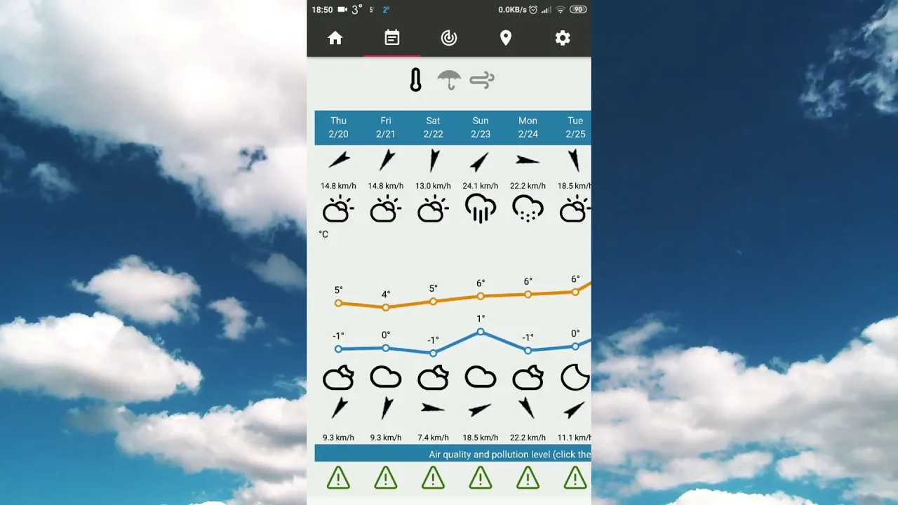 Weather forecast app for Android with a clear and unobtrusive, but informative user interface. The application provides the user with a weather forecast of 24 hours / 10 days. The weather forecast is displayed in graphs, which improves information perception. In addition, the hourly forecast provides extended information (wind speed, relative humidity, atmospheric pressure, cloud cover, etc.) A distinctive feature of the application is an original and convenient way to select a weather forecast for a specific point in time - just scroll the hourly forecast graph and the application displays a forecast for that time. Another useful feature is severe weather conditions alarms. The extension will notify you of a temperature change, precipitations, low visibility, strong wind or high UV index. Alerts levels are customizable. Of course, the application has a set of widgets for every taste and can determine the weather forecast for the current location. An additional bonus is the weather radar, which allows you to visualize changes in weather conditions