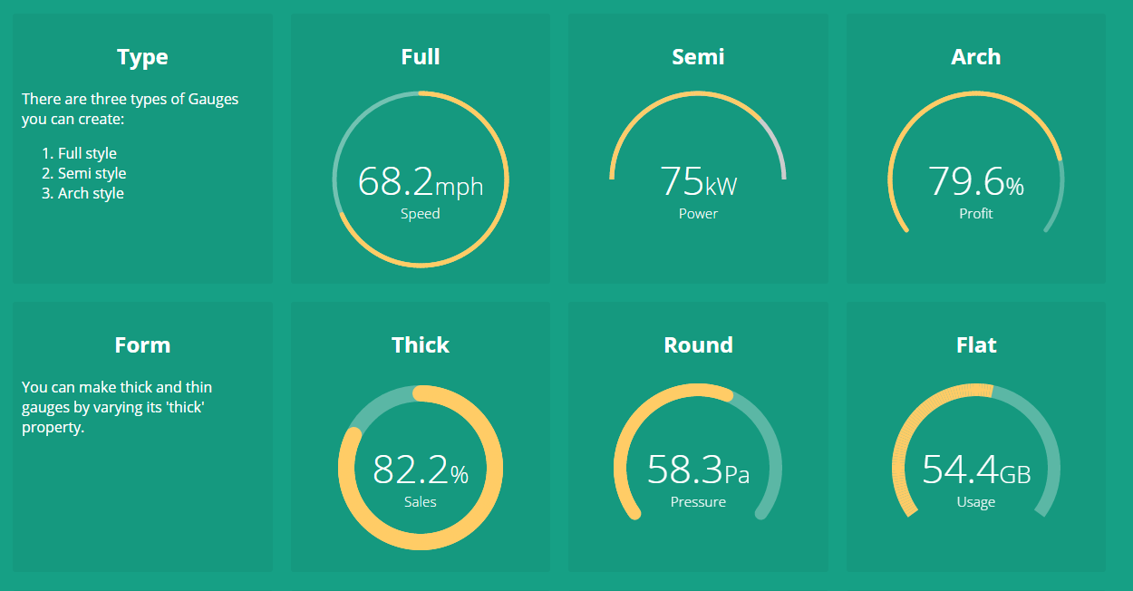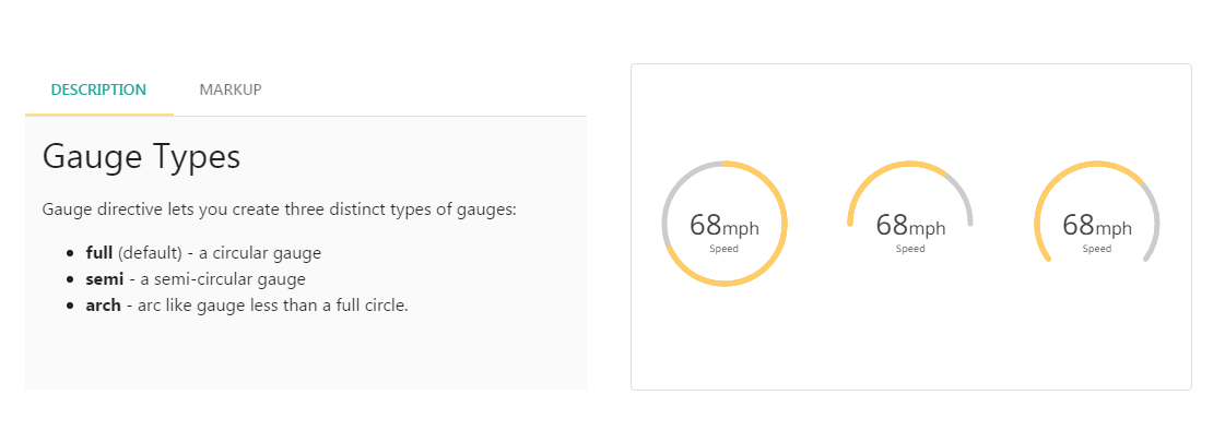 angular-gauge is a gauge widget directive for Angular JS apps and dashboards.