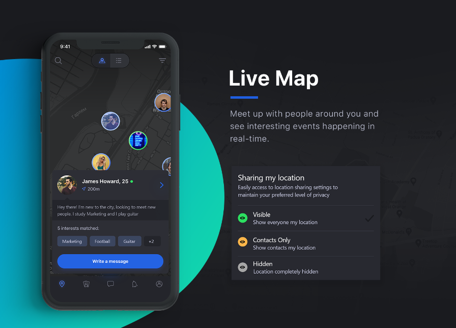 Aphinity is a group platform centered around the idea of building a community through the connection of users that share similar interests/experiences. It allows users to form groups, and create/discover events that they are interested in. Aphinity answers the question, “what is there to do around me right now, and with who?”. This is a platform that can connect users in a platonic way to solve the need for discovery of shared interests and connections. An event feed and a live map can show users what’s happening around them in real-time, at the exact moment that they request the information. Instead of painstakingly planning out logistics with friends or doing background research on venues and event information from different sources, users will have a centralized location from where they can plan their social logistics. This saves time, simplifies connection, and provides access to a social experience users might not have otherwise found out about.