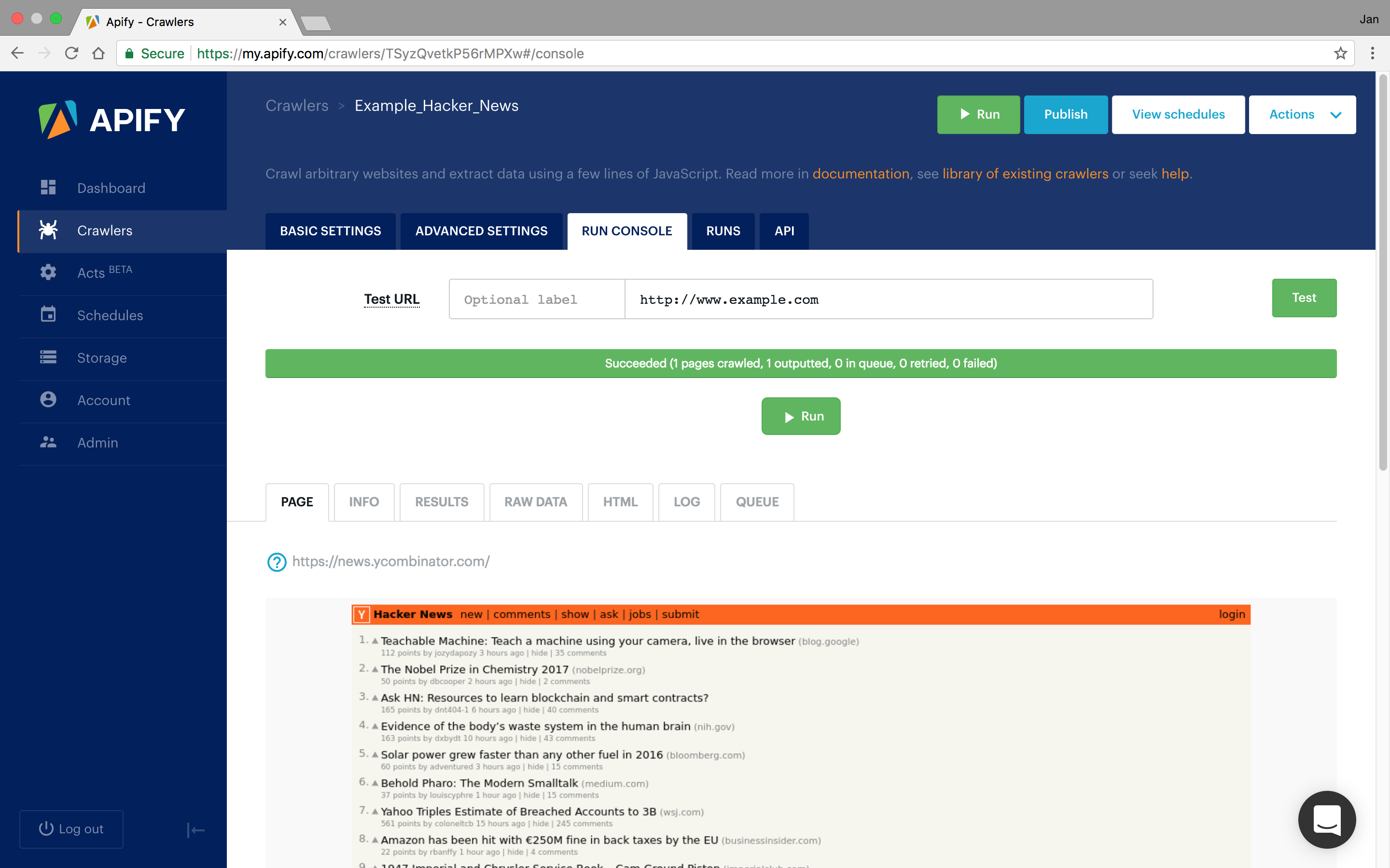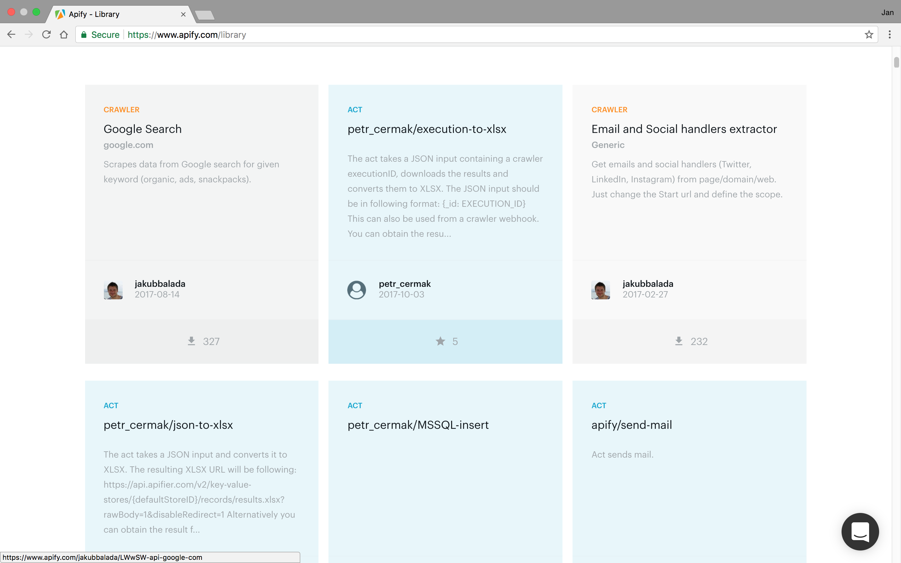 Apify (formerly Apifier) extracts data from websites, crawls lists of URLs and automates workflows on the web. Turn any website into an API in a few minutes!