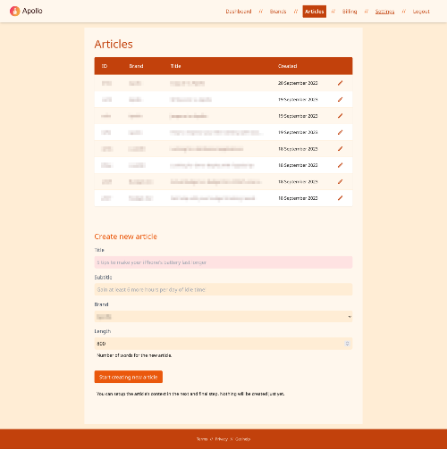 Your brand's wordsmith! Unlock the power of AI and ML with Apollo, your affordable brand copywriter. Craft compelling blog posts and articles effortlessly, in your brand's unique voice. Boost your content strategy with Apollo today! Apollo transforms your ideas into compelling narratives. Harness the power of AI and ML for affordable, on-brand blog posts and articles. Your brand's story deserves Apollo's touch.