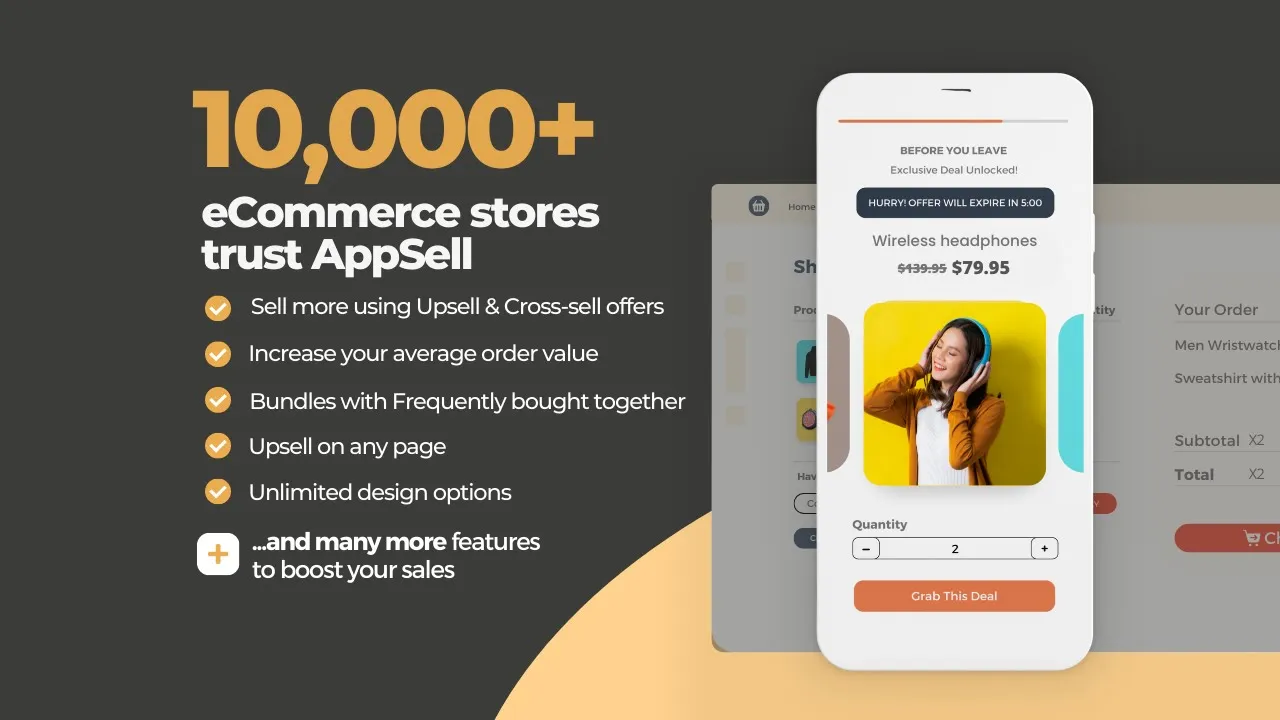 Using AppSell, you can increase your store average order value and revenues significantly with the easiest-to-use Wix store upsell builder app. You can change the design to match the style of your Wix storefront with just a few clicks! AppSell will help you to sell more to the same customer by easily customizing your cart, checkout and post-purchase thank you pages with discounts and exclusive offers on product recommendations that your customers can add to the cart with one click.