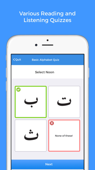 Learn the Arabic Alphabet! This complete guide will teach you how to read and speak Arabic quickly and slickly. Includes Animated Guides, Offline Arabic phrasebook with audio, various quiz modes & levels.
