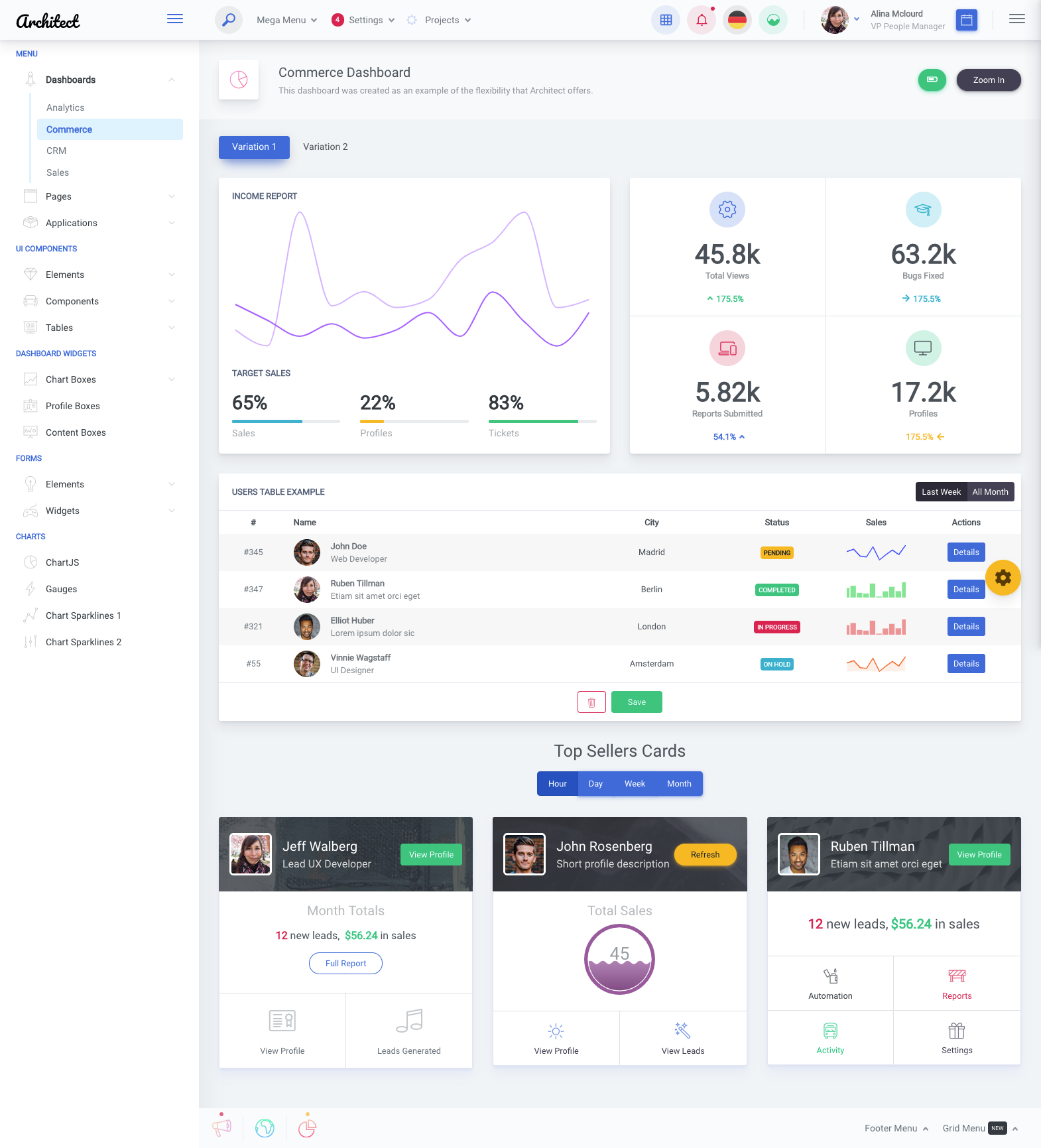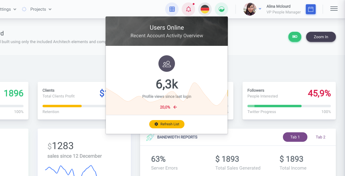 ArchitectUI is a modern admin dashboard template built for ReactJS and jQuery Bootstrap 4 HTML. It includes lots of components, elements and widgets so that developers don't waste time with the visual/design part. They just put some components together and voila, the app looks like it was built by a professional designer.