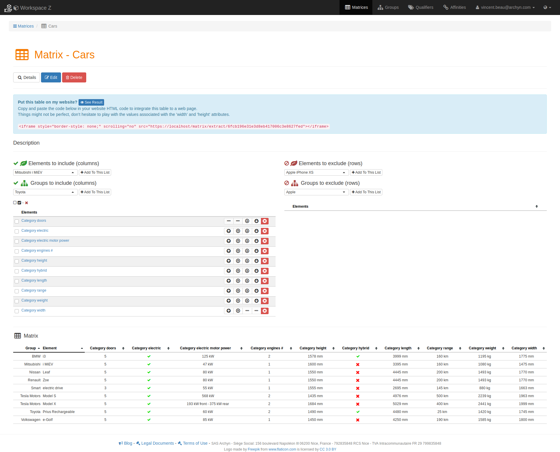 Ever had to create a comparison table for a website/project or even for yourself? Ever felt the pain of maintaining it over time? Extending it or having to make copies? Maintaining all these versions accuracy over time? We allow you to build them while focusing on the core: The things you care about and how they relate to each other, tables are just a mean, coding shouldn't be in the way. With Archyn you can truly build comparison matrices were any change on an Element is seamlessly cascaded everywhere without hassle, it's as simple as that.