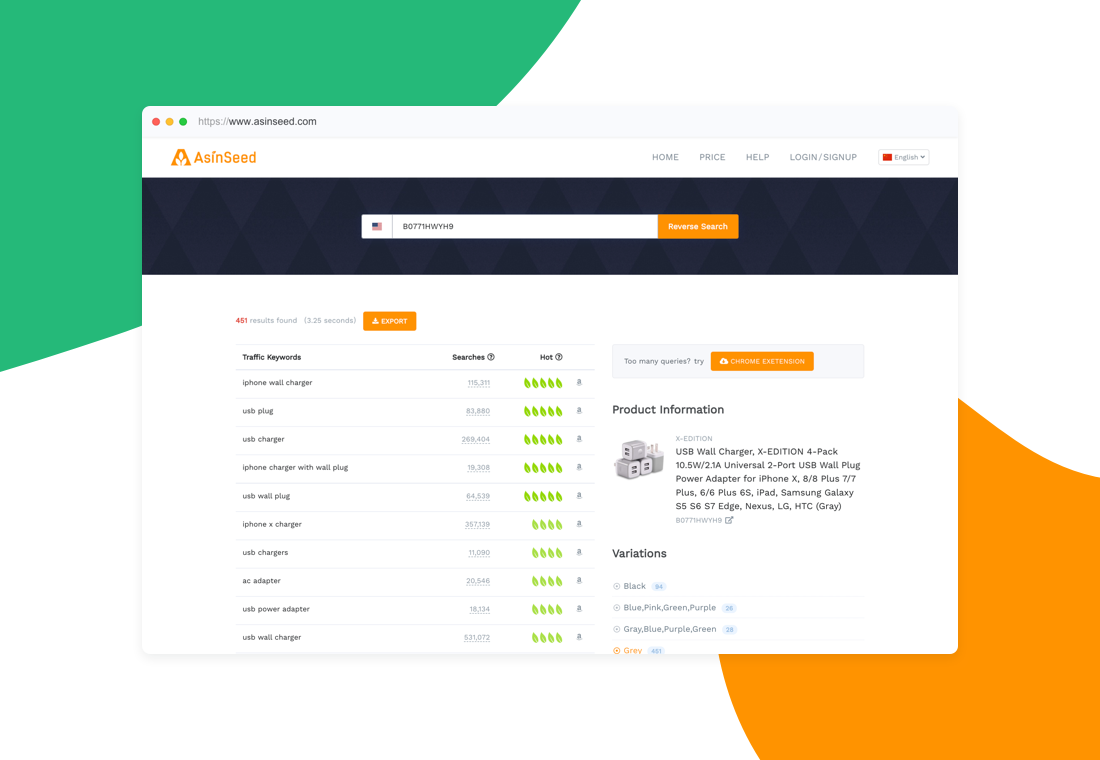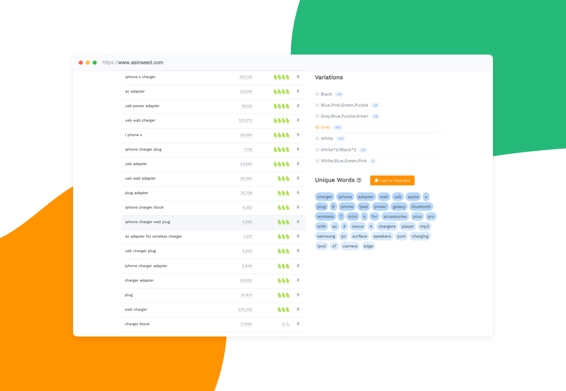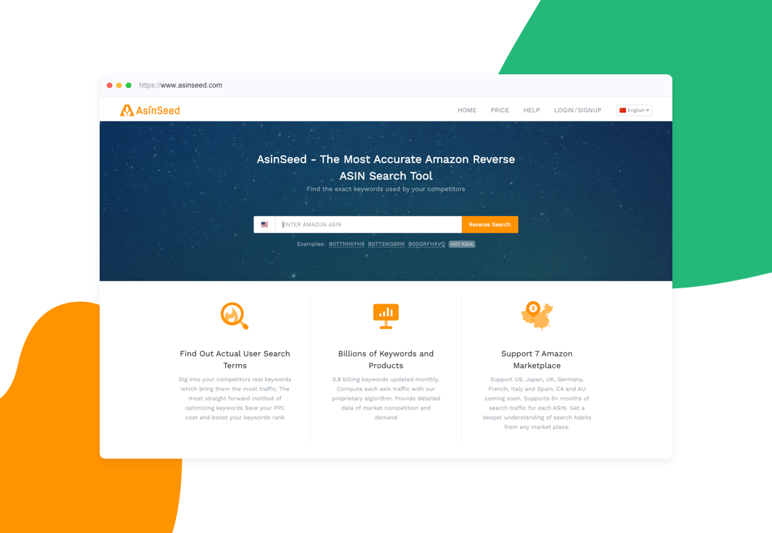 AsinSeed is a leading Amazon keyword tool provides the most accurate data for data-based SEO and PPC marketing strategy, getting your product in front of Amazon shopper, increasing conversion rate, saving ACOS, and thus boost sales. AsinSeed allows you to find out the real traffic-driving keyword of competitor. Reverse Asin tool digs out all the keyword which drive traffic&exposure to competitors, and ranks them with a score of 1-5, indicating how much traffic each keyword drives. these keywords are the most important for your listing&PPC optimization. AsinSeed allows you to find a complete list of relevant keyword instantly. All keywords are derived from the real search done by Amazon shoppers, ranked by search volume descending, you are able to expand more keywords which are going to make the most significant impact on your product rankings. AsinSeed allows you to analyze and prioritize keywords. You can get the real search volume, purchase, conversion rate, competition, and trends for each keyword. AsinSeed covers all the marketplaces you are working, supports free trial!