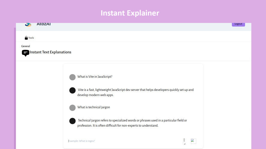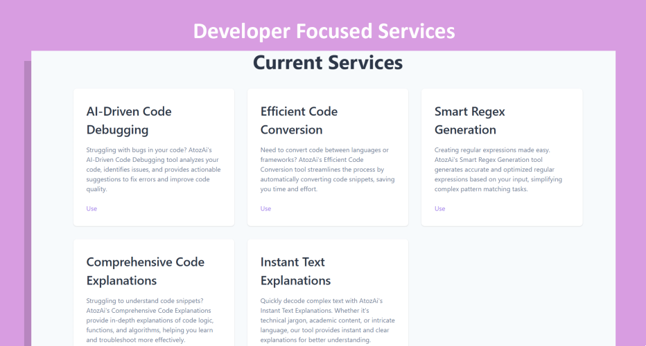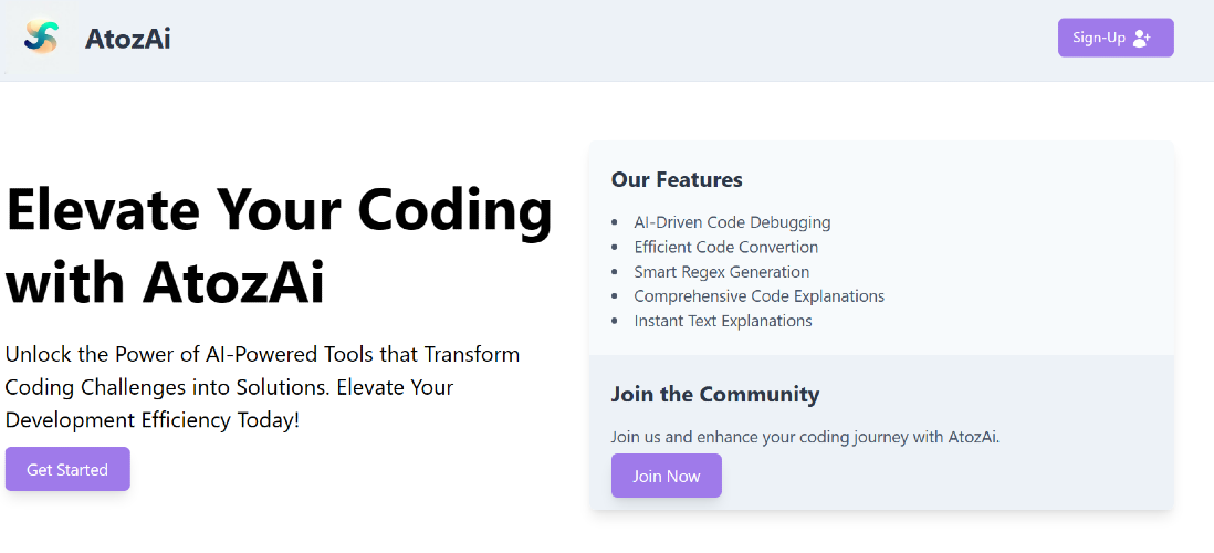 Elevate your coding game with Atozai, the ultimate coding companion! Debug effortlessly, convert code seamlessly, generate regex with ease, and enjoy concise code explanations. Say goodbye to coding roadblocks and hello to a smoother, more efficient workflow. Atozai is your partner in code, making your development tasks a breeze.
