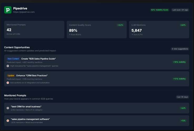 Attensira is a pioneering SaaS platform designed to help B2B companies increase their visibility across AI-powered answer engines like OpenAI, Claude, Gemini, and others. Why AI Visibility Matters Changing User Behavior: A significant number of B2B buyers now utilize AI tools during their research phase, seeking immediate and concise answers. Higher Conversion Rates: Traffic referred by AI platforms has been observed to convert at rates significantly higher than traditional search engine traffic. Direct Content Citation: Unlike traditional search engines that list links, AI platforms often cite content directly in their responses, making it crucial for your brand to be the source of these citations. Key Features of Attensira 1. Prompt Tracking Monitor how frequently your content is cited in AI responses. Identify which specific pages are being referenced. Analyze the prompts that trigger your content's inclusion. Gain insights into competitor content appearing alongside yours. 2. Content Optimization Recommendations Receive actionable suggestions on content to create, update, or remove. Identify content gaps that, if addressed, could boost AI visibility. Prioritize updates based on potential impact and track performance post-implementation. 3. AI-Optimized Content Generation Leverage AI to generate drafts tailored for maximum visibility in AI responses. Ensure content structure aligns with AI citation patterns.