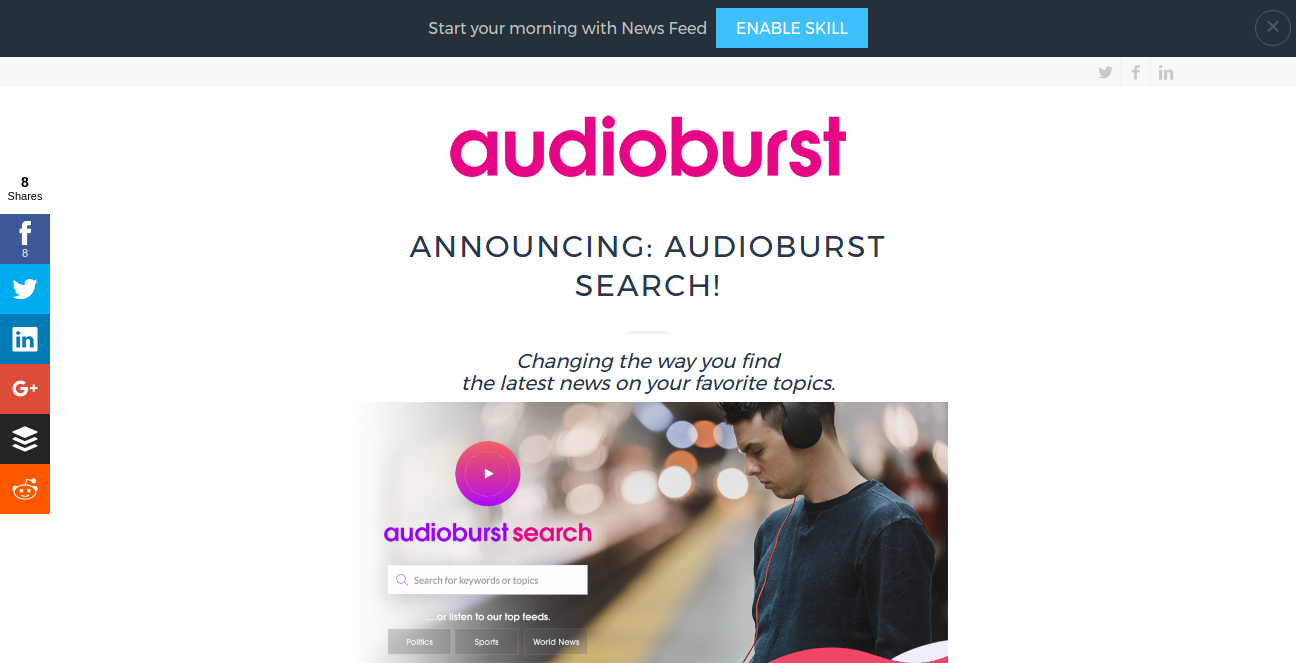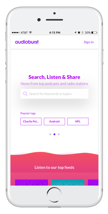 It is a search engine for finding, discovering, consuming, and sharing the latest news over audio. With Audioburst Search, anyone can access the world’s largest library of live and pre-recorded podcasts and radio simply by searching a keyword. -Search by keyword or phrase -Check out a popular tag -Listen to one of our top feeds, etc.