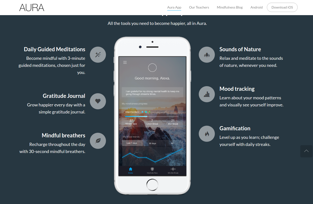 Do you wish to control your stress and thoughts better? Are you seeking more positivity? Have you tried other mindfulness meditation apps but couldn't form a habit around them? Aura is the best mindfulness meditation app for anyone interested in mindfulness; Aura provides short and sweet, science-backed, and personalized mindfulness meditation exercises every morning to make you happier. Each morning, you will meditate for three minutes and start off the day with energy and positivity. And it's fun and addicting. With Aura, you can form a healthy morning/evening routine effortlessly and live a simpler, happier life.