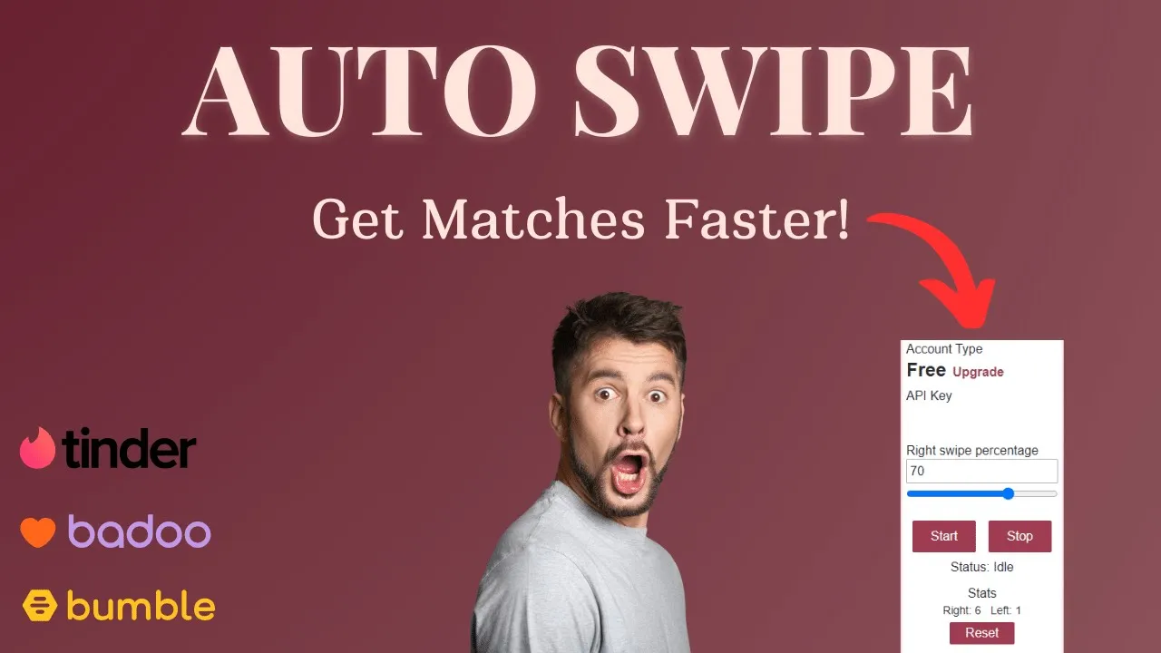 Auto Swipe is a Chrome extension that automates your swiping actions on dating platforms like Tinder, Badoo, and Bumble. Our tool does the work for you, saving you time and increasing your matches.