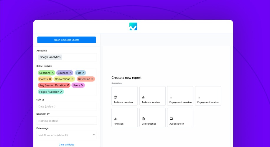 ℹ️ What is Avian? Avian automates marketing data. Our first product makes it super easy to extract any data you have in Google analytics and put it into Google sheets. Automatically and live synced. 🤷♂️ Who's it for? For marketers that create regular reports. And for power users of tools like Google Analytics, using the API we make it possible to extract much more data than Google Analytics shows to you on their interface. And it is much faster too! 📈 Why should I use it? If you manually are exporting GA data, or have to create reports regularly, give Avian a try because it is likely to save you time and generate much richer insights.